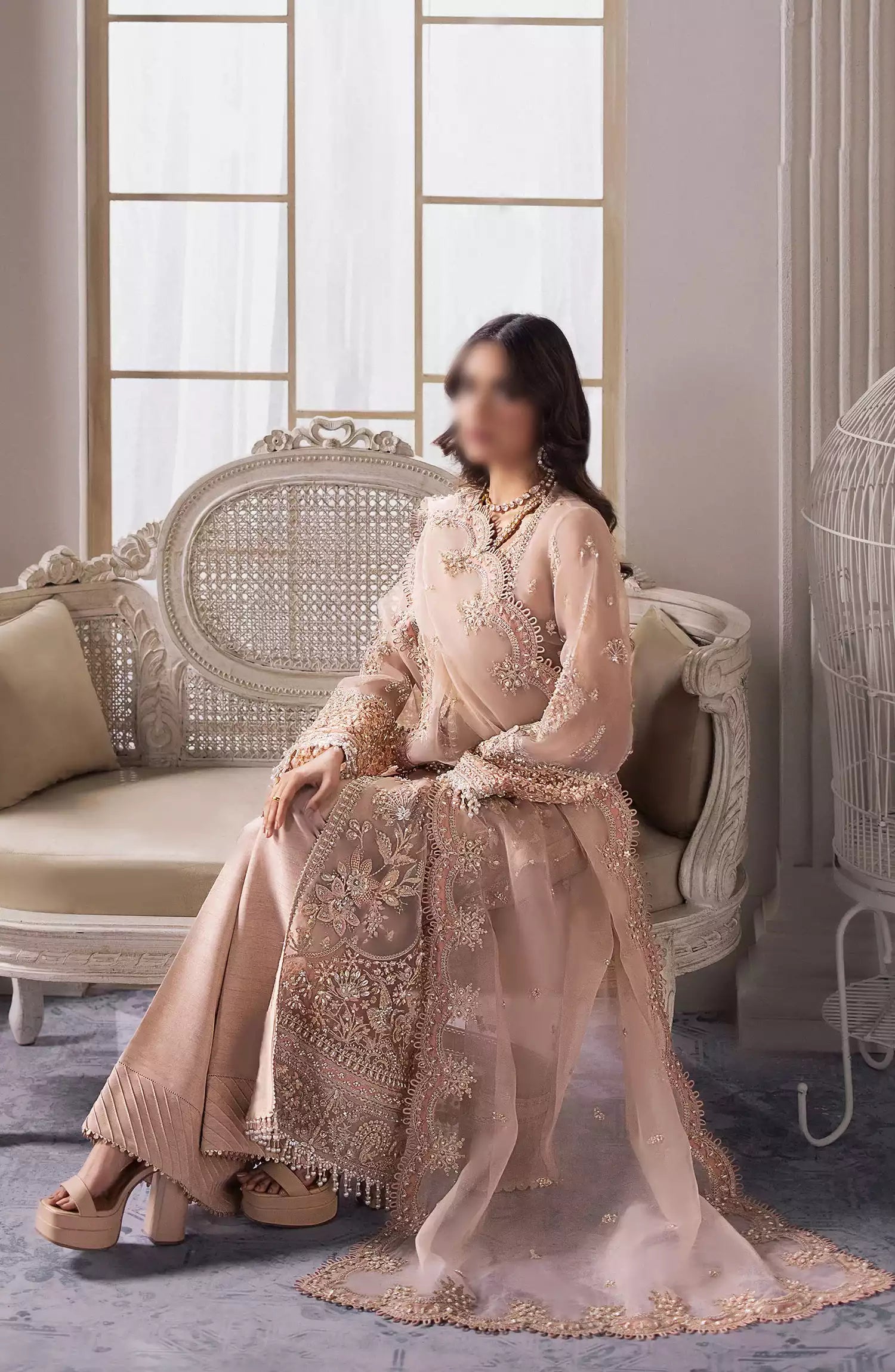 Zaha Gossamer Unstitched Collection 2024 has been styled in the image for photography and illustrative purposes.