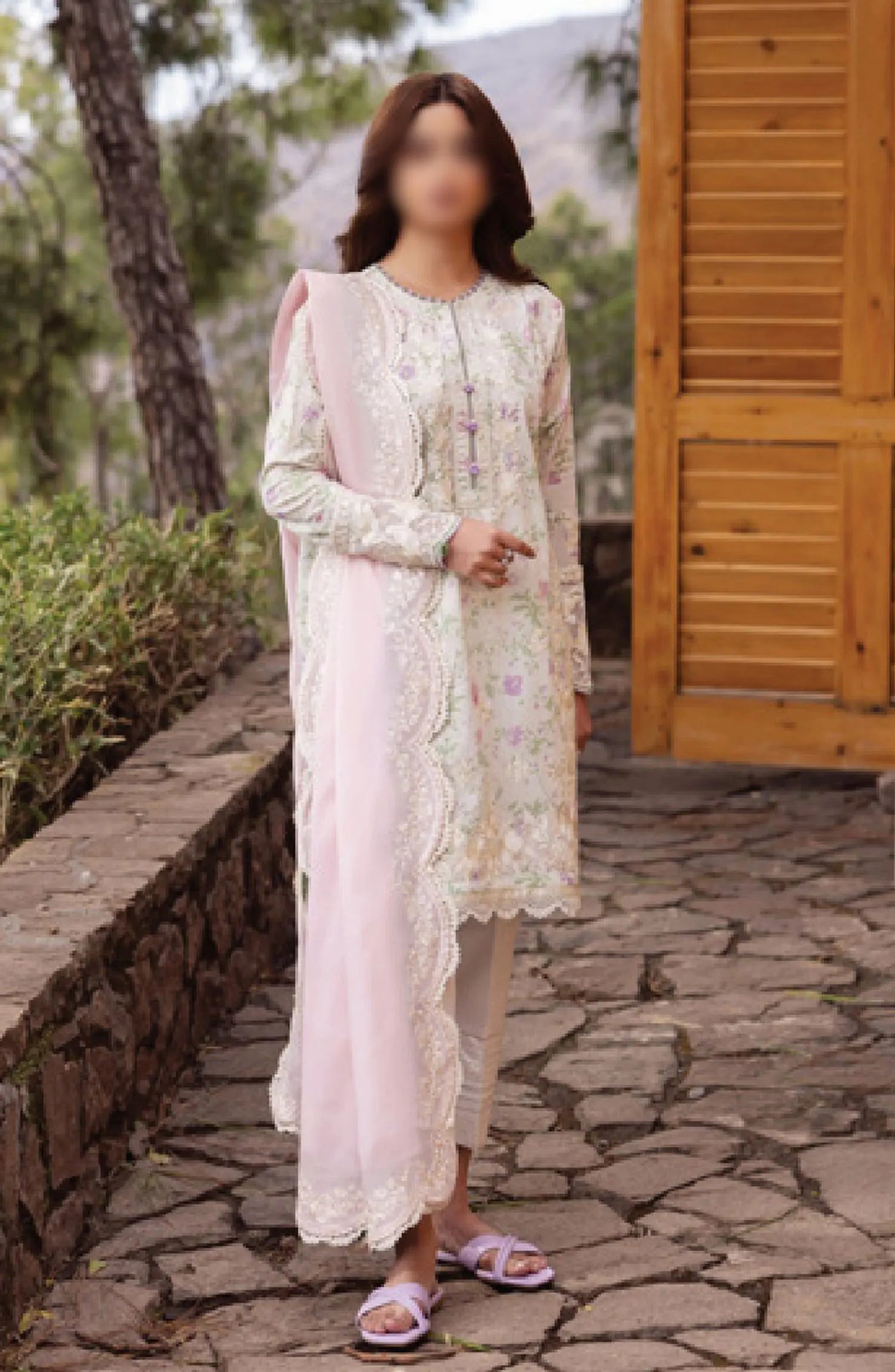 Digital Printed + Embroidered Front Center Panel (Lawn)