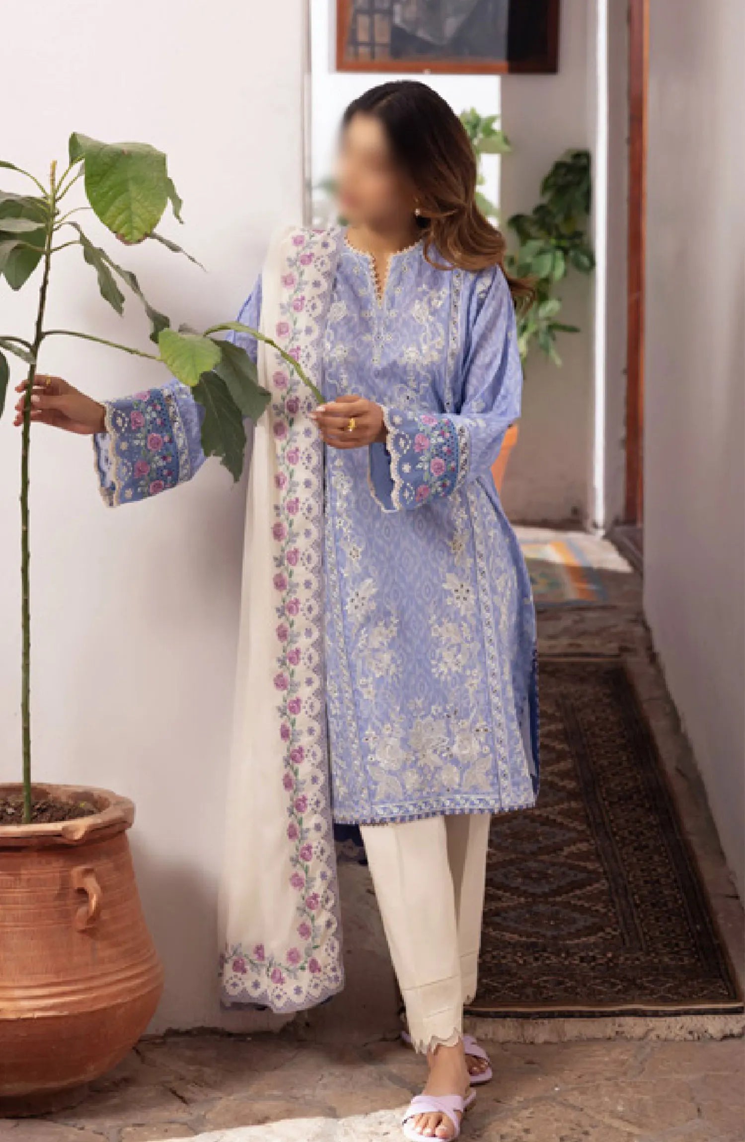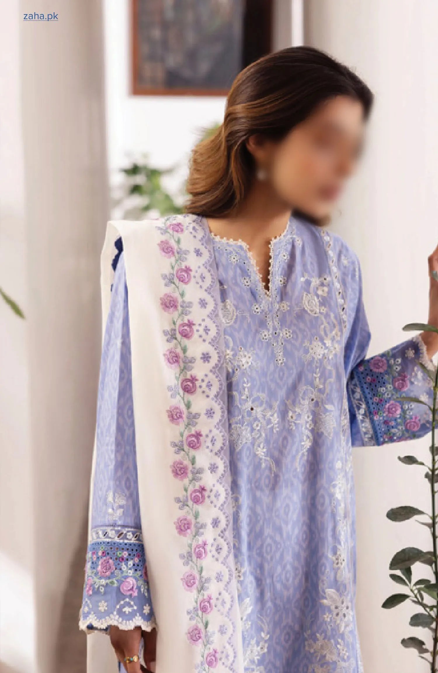 Zaha Unstitched Lawn Collection 2024 has been styled in the image for photography and illustrative purposes.