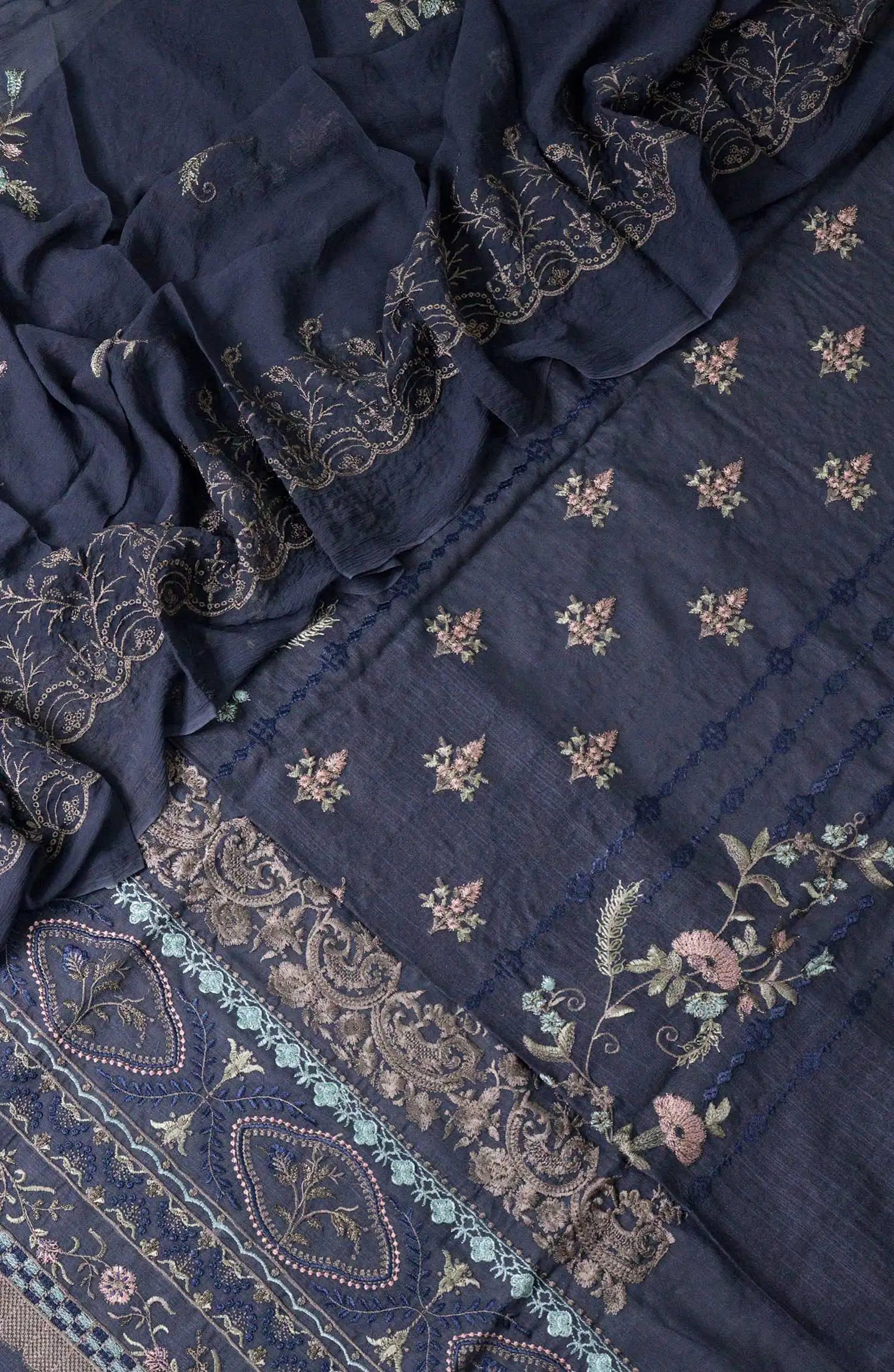 Ayla Embroidered Chambray Stitched 2 Piece Solids - EAE210105G - AY25SW - Charcoal - Winter Collection