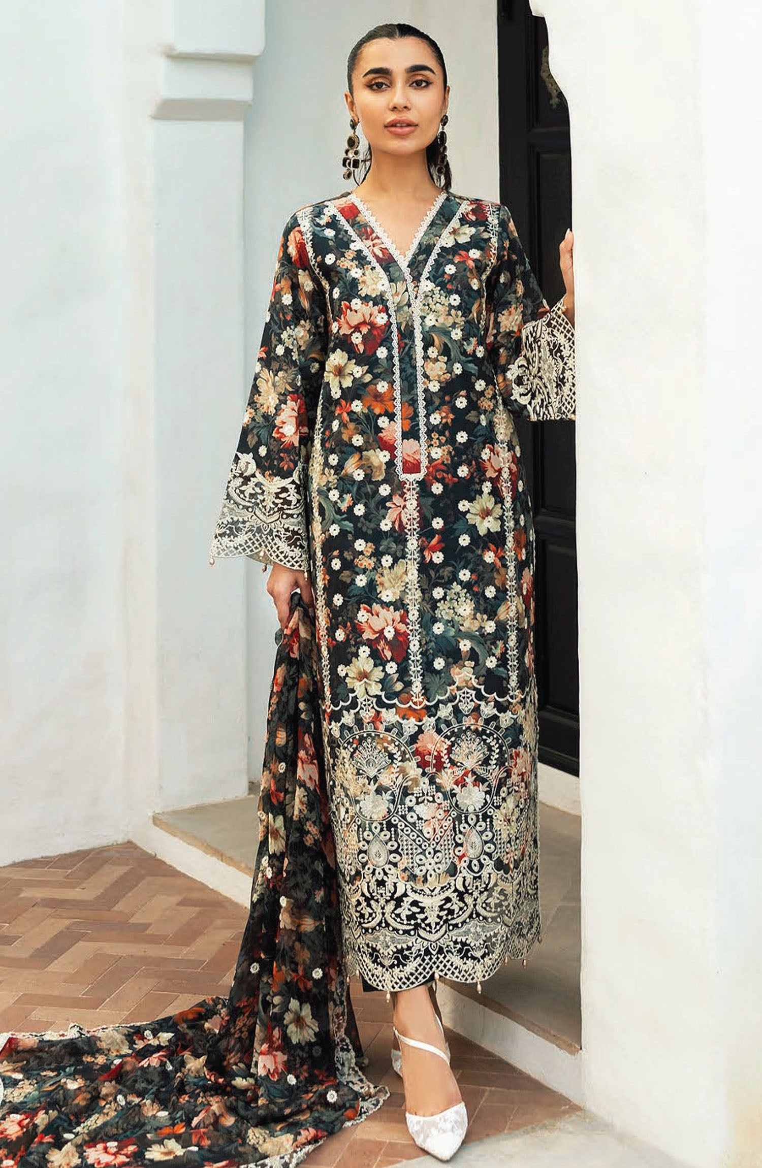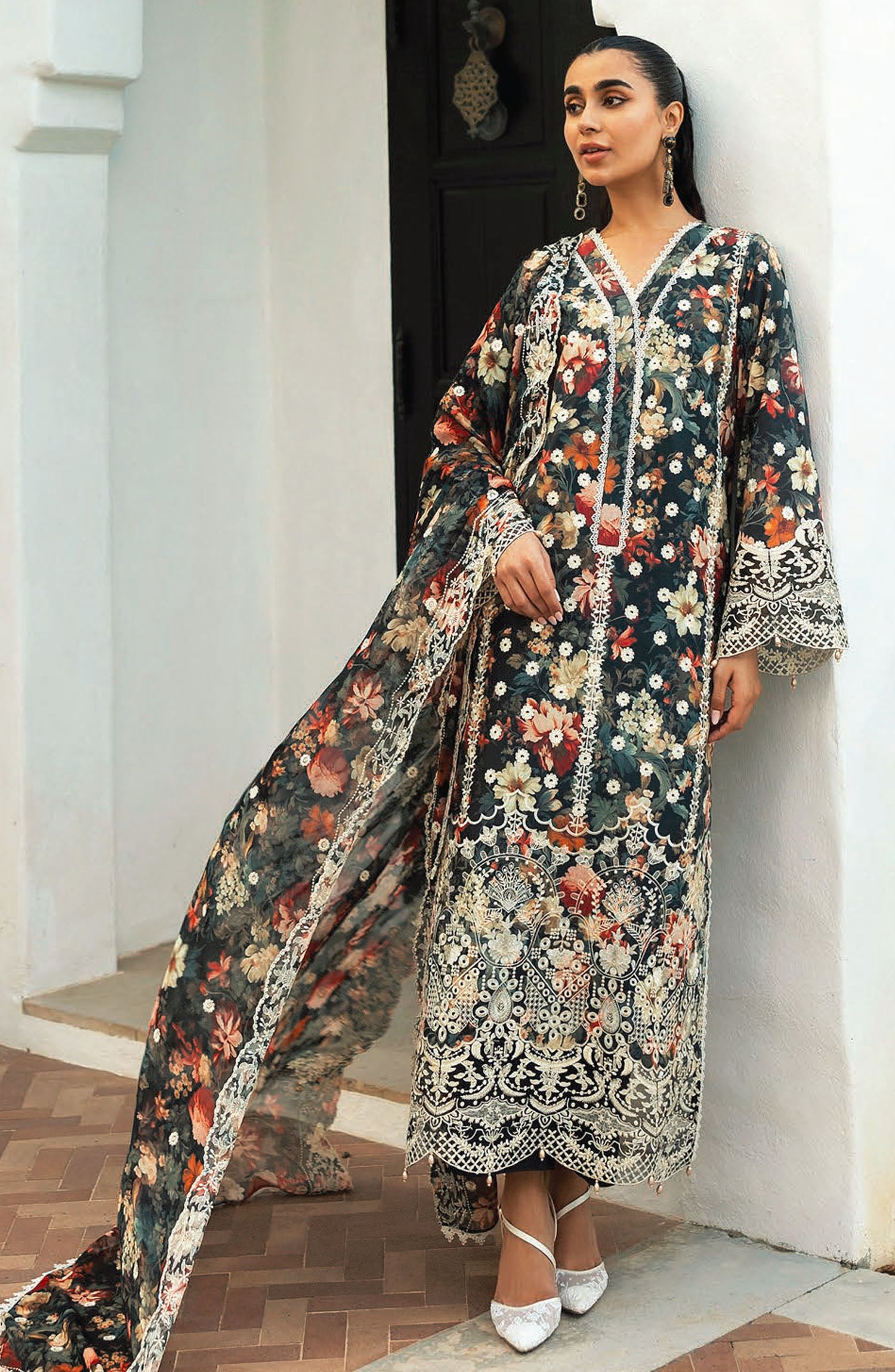 Mahpara by Sadabahar Embroidered Net Stitched 3 Piece Suit - Design-01 - SBD25PRLM - Black - Luxury Festive Collection
