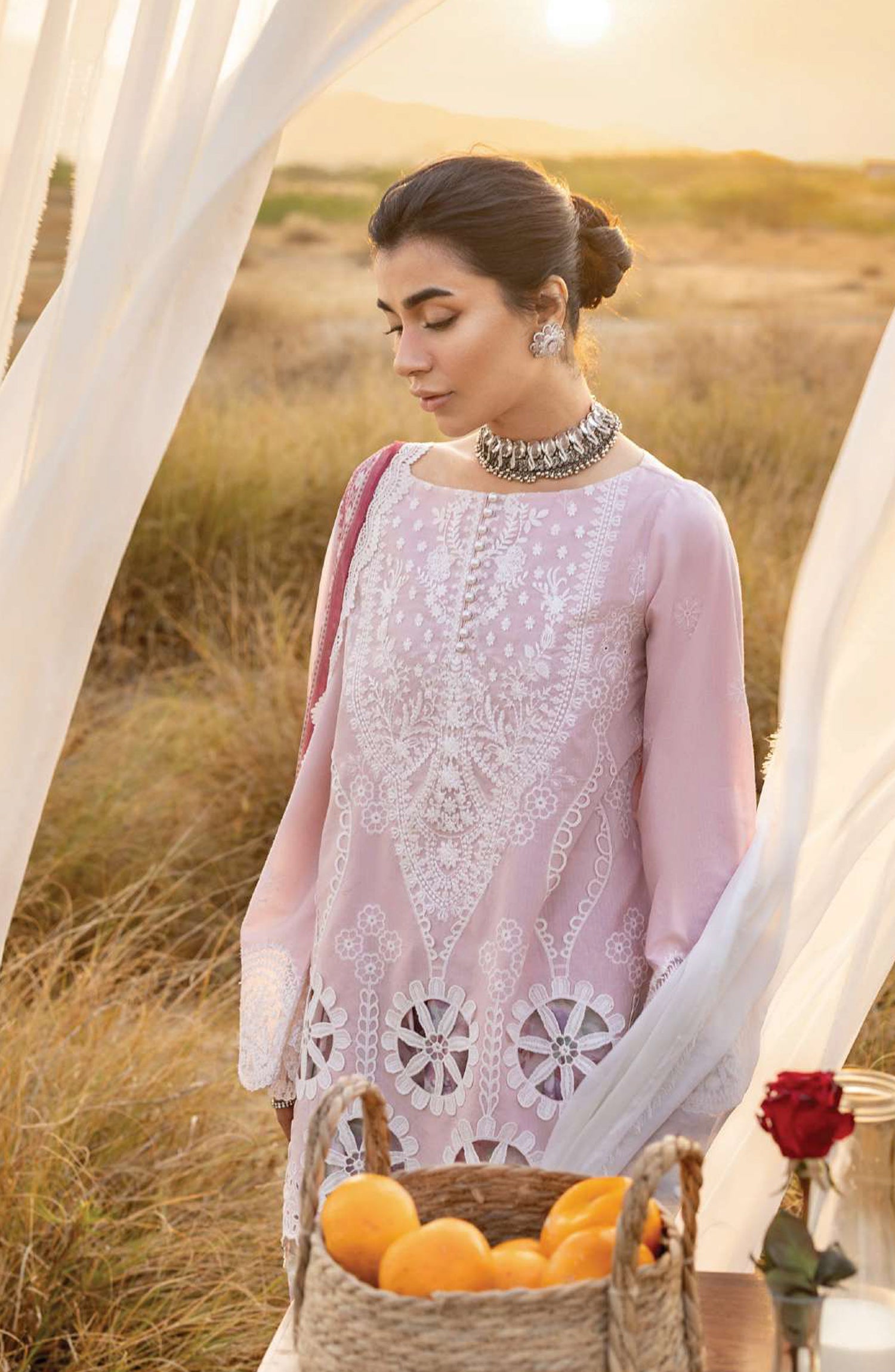 • Embroidered Neckline on Organza (1 Pc.)