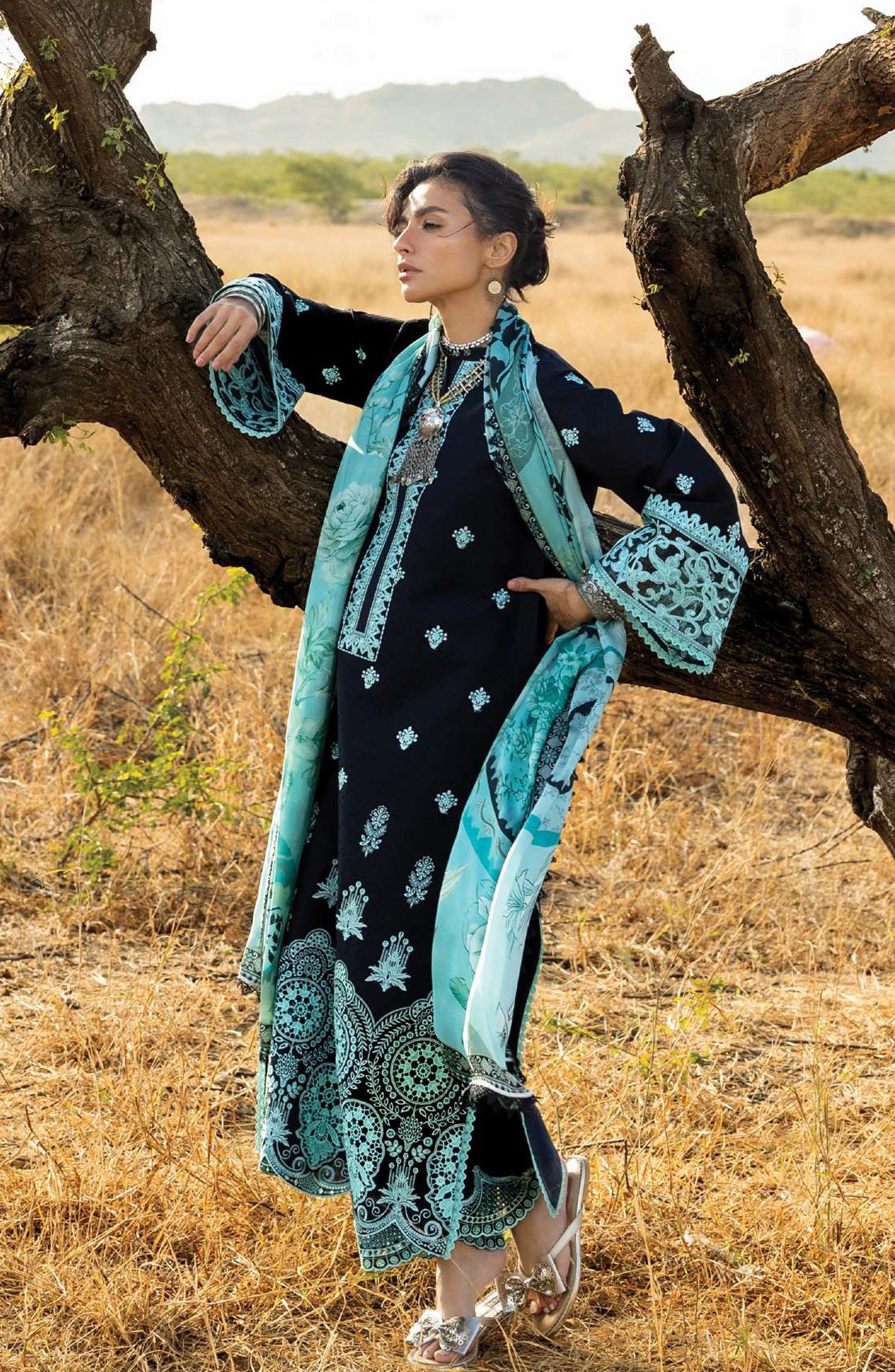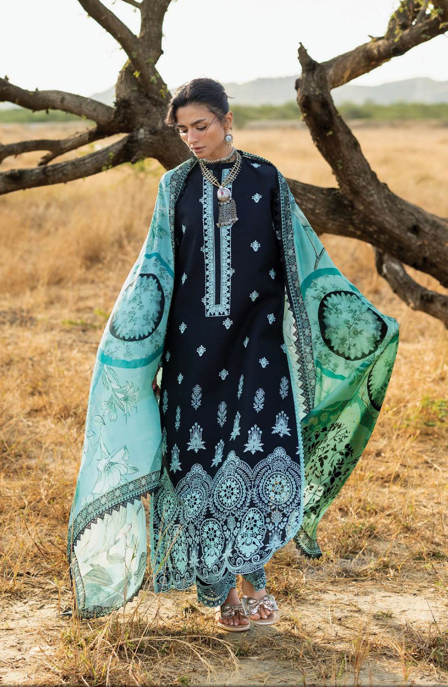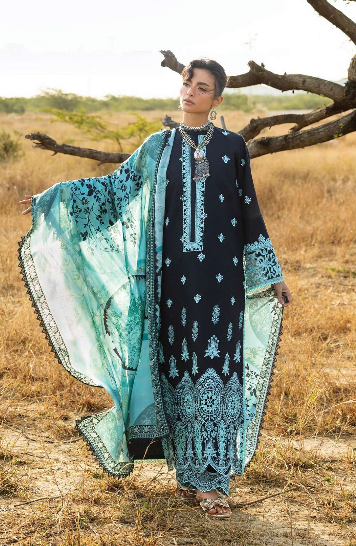 • Embroidered Neckline Border on Organza (1 Mtr.)