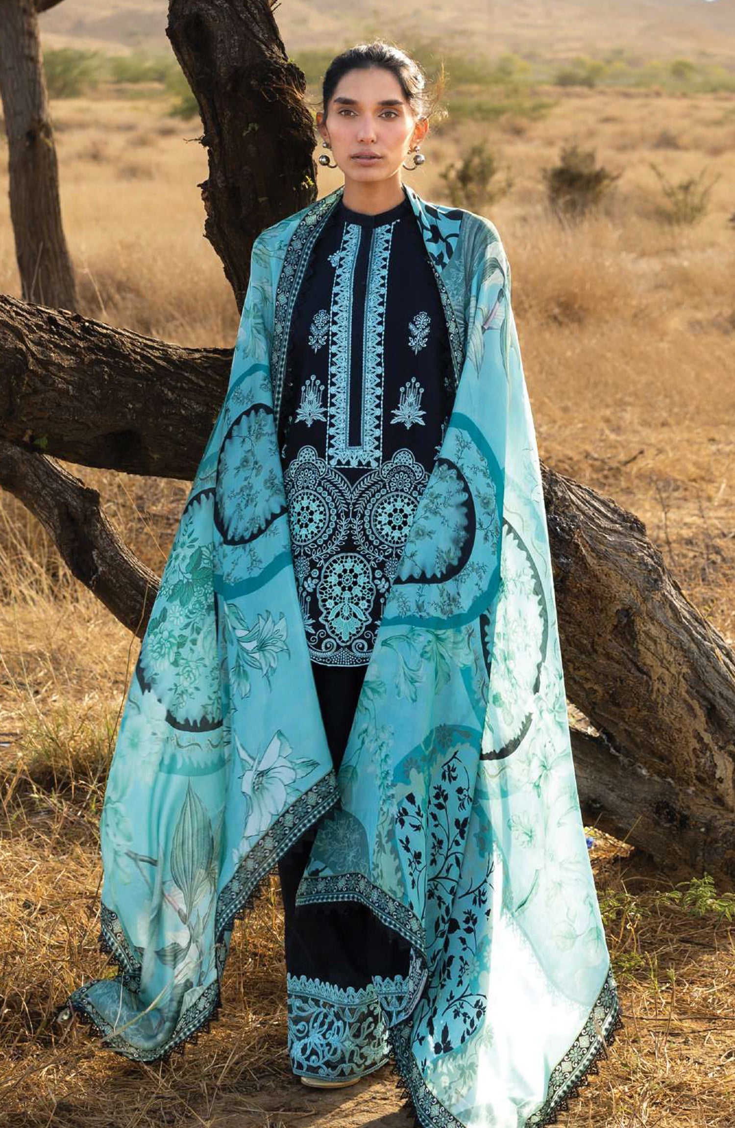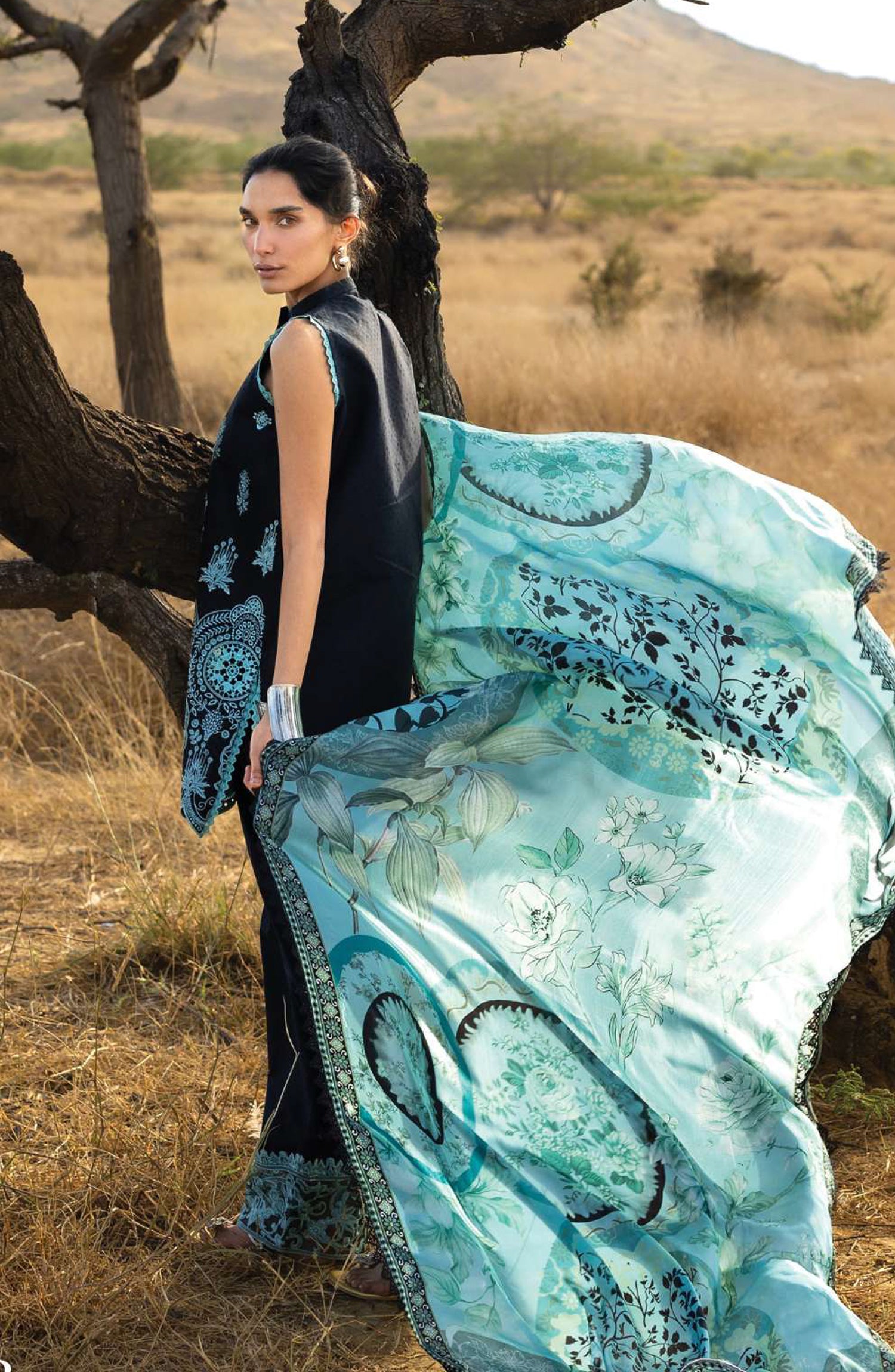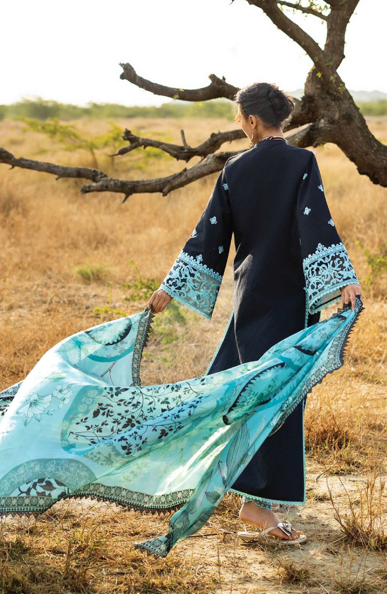 • Embroidered Sleeves Border on Organza (1.25 Mtrs.)