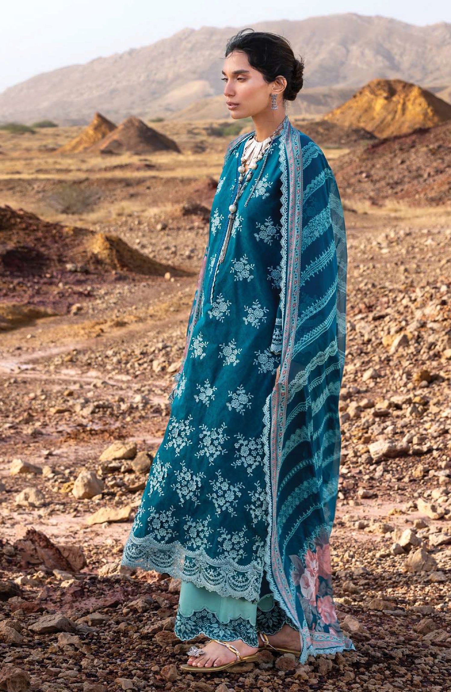 • Embroidered Sleeves Border on Organza (1.25 Mtrs.)