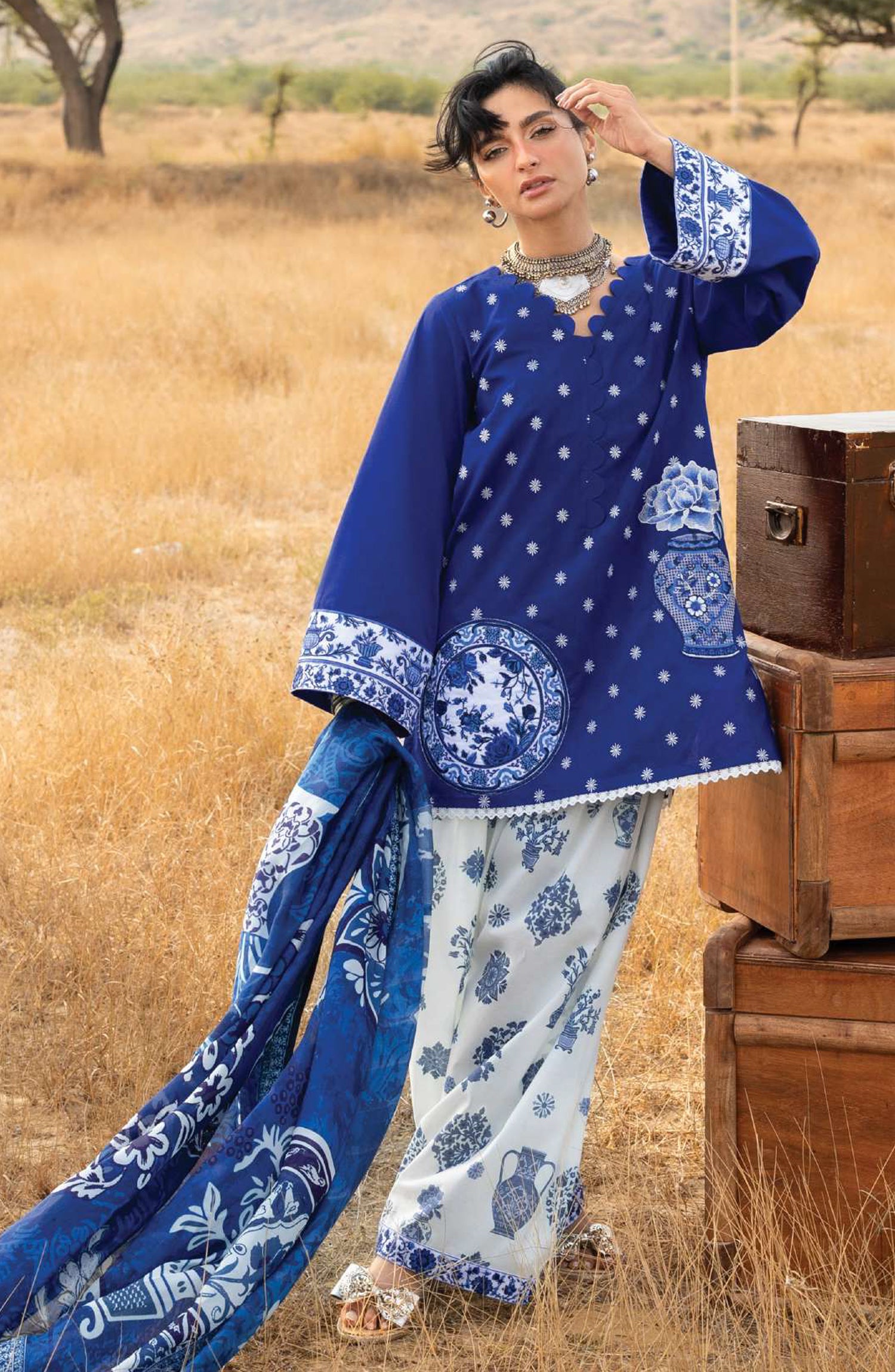 • Embroidered Chak & Daman Border on Lawn (2.5 Mtrs.)
