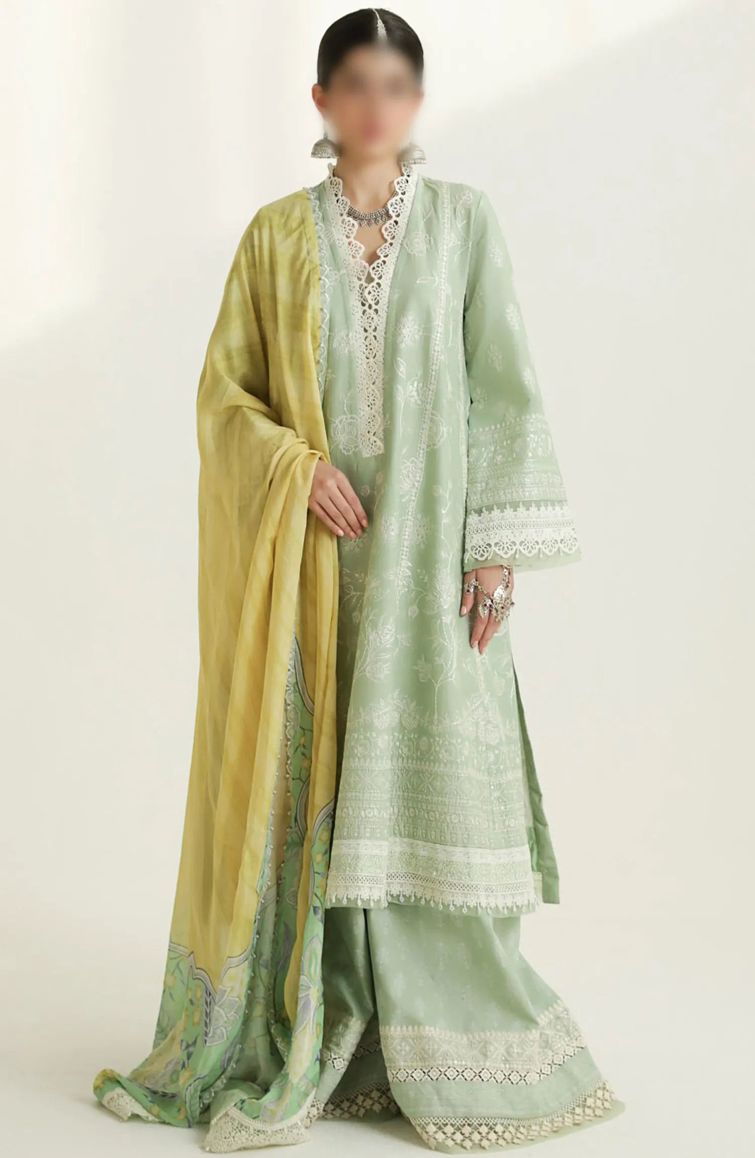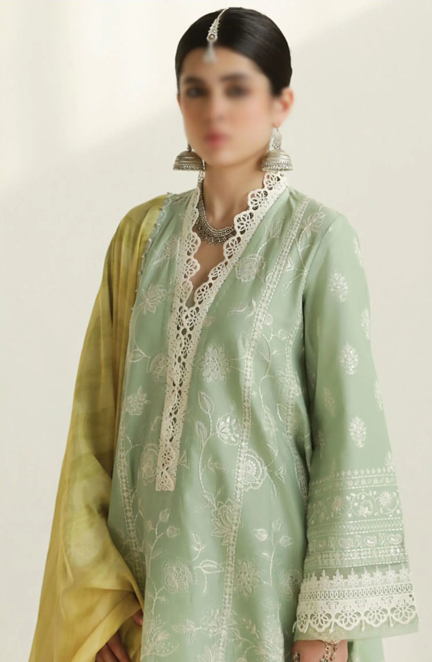 Zara ShahJahan Unstitched Lawn SS Collection 2024 has been styled in the image for photography and illustrative purposes.