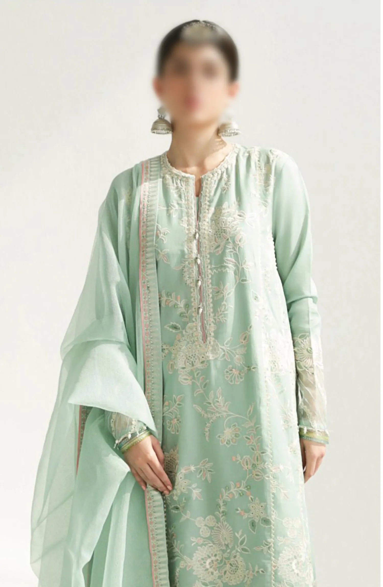 Modest Embroidered Chiffon Stitched 3 Piece Suit - 9615-Nblu - MOD25PRF - Blue - Festive Girls Collection
