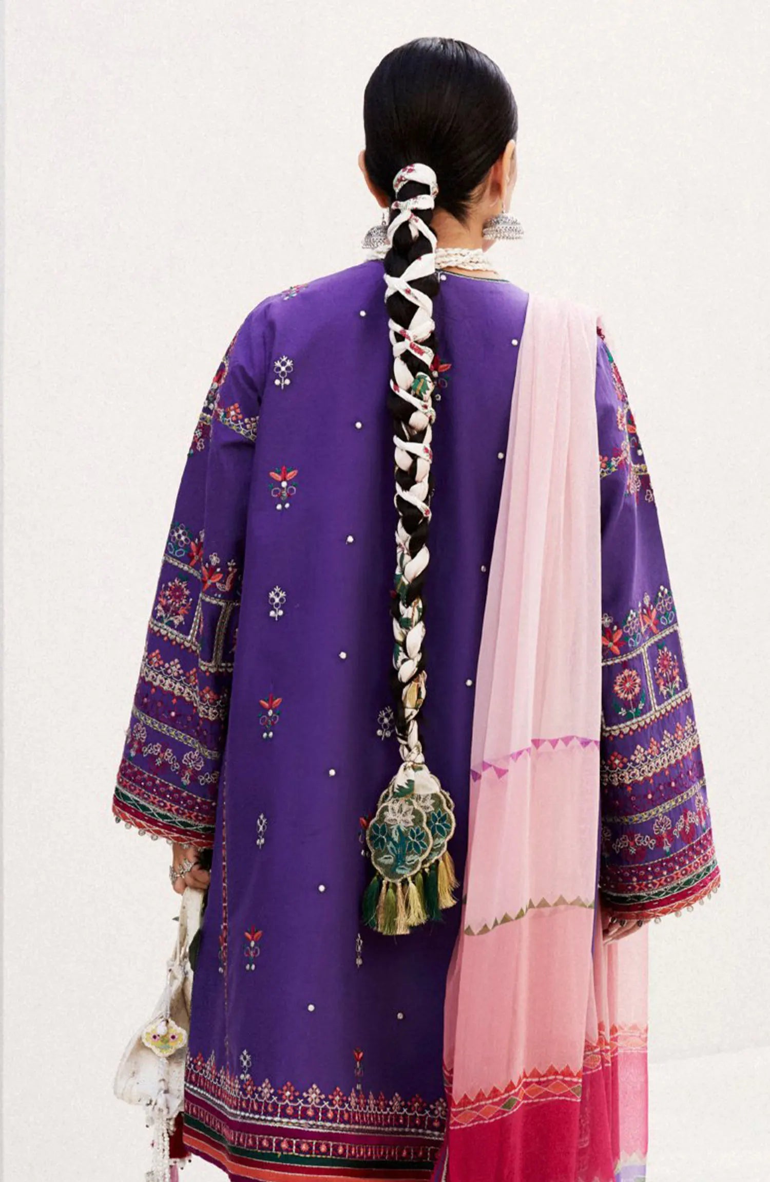 Zara ShahJahan Unstitched Lawn SS Collection 2024 has been styled in the image for photography and illustrative purposes.
