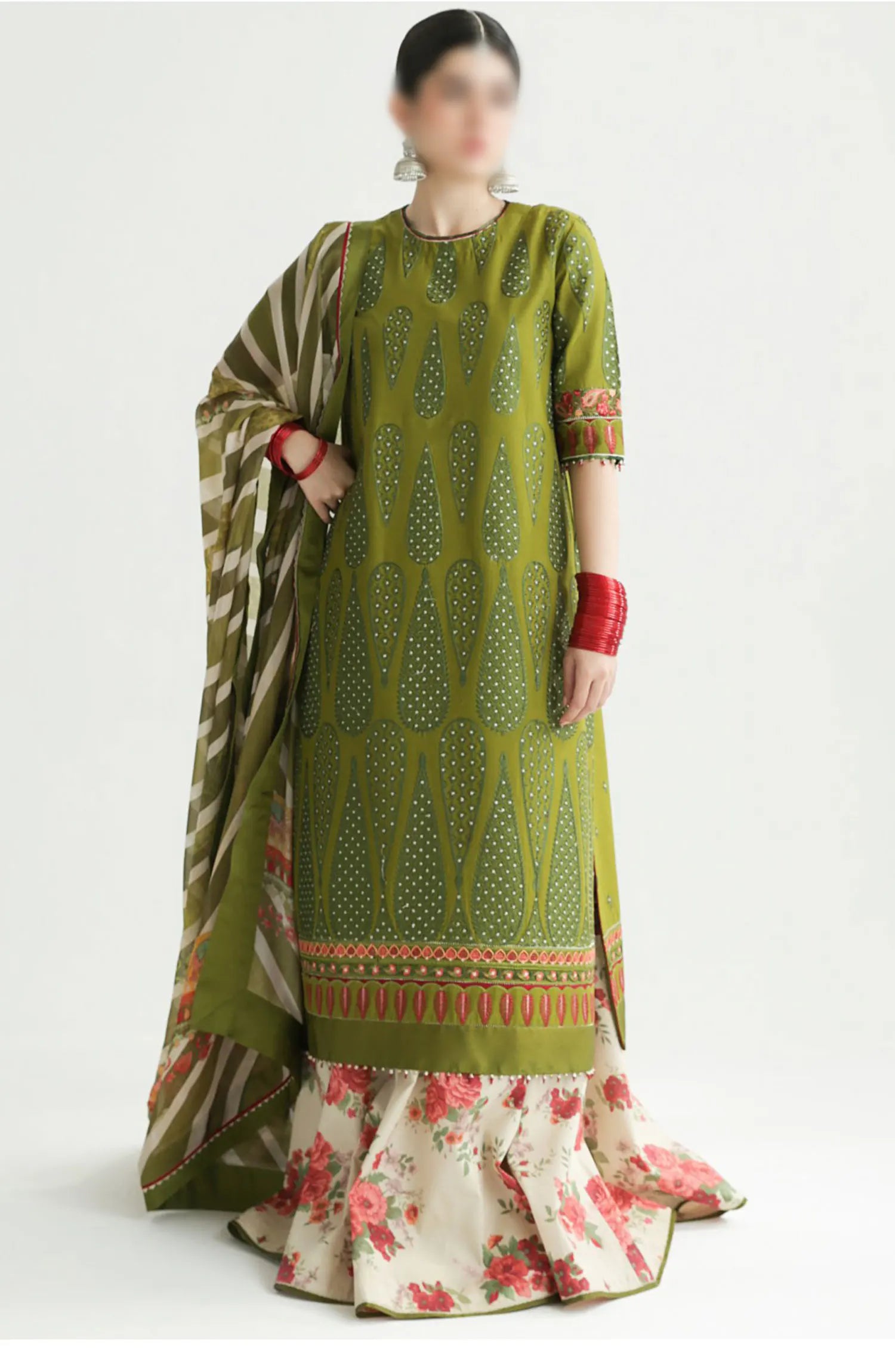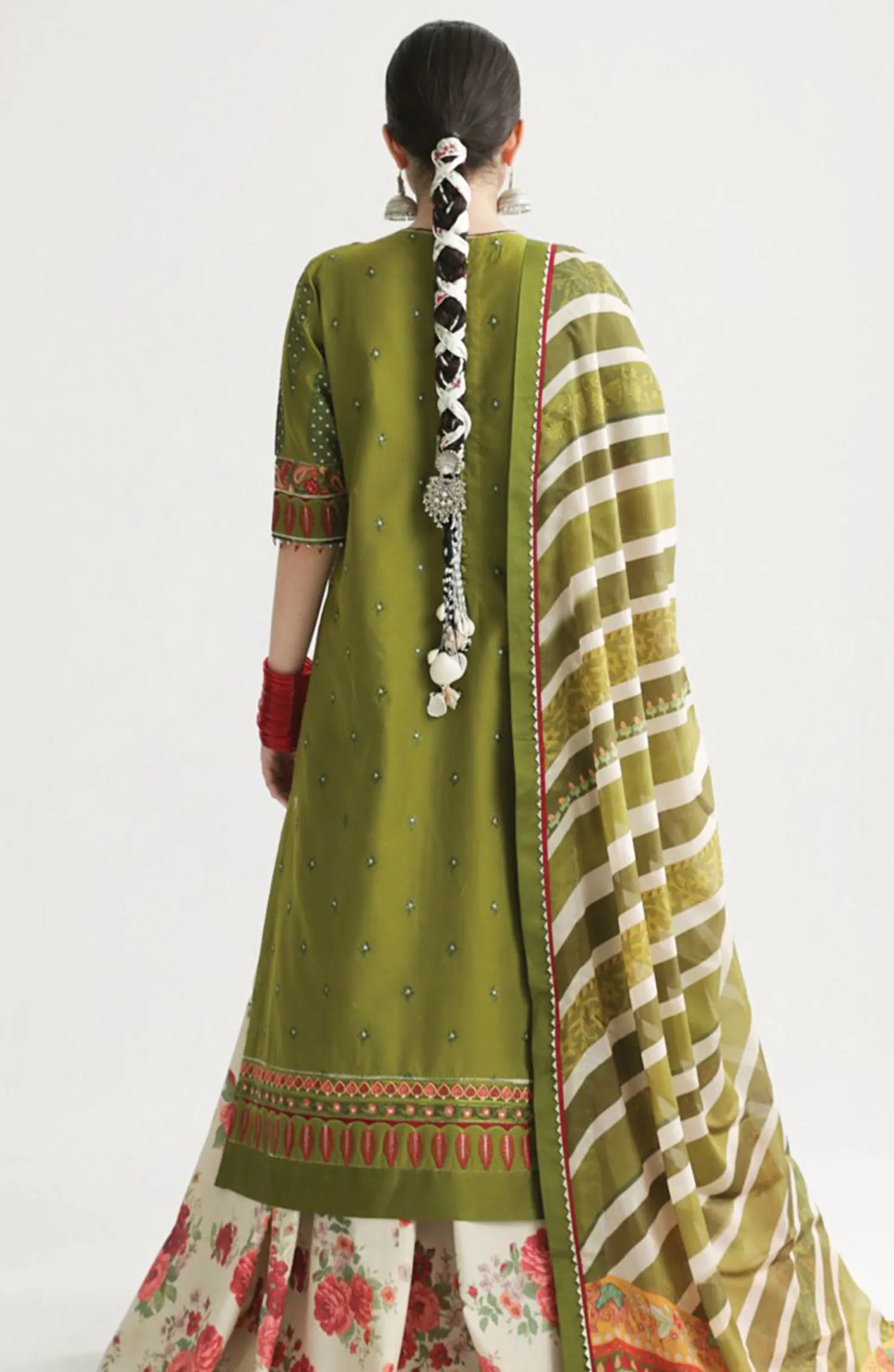 Zara ShahJahan Unstitched Lawn SS Collection 2024 has been styled in the image for photography and illustrative purposes.