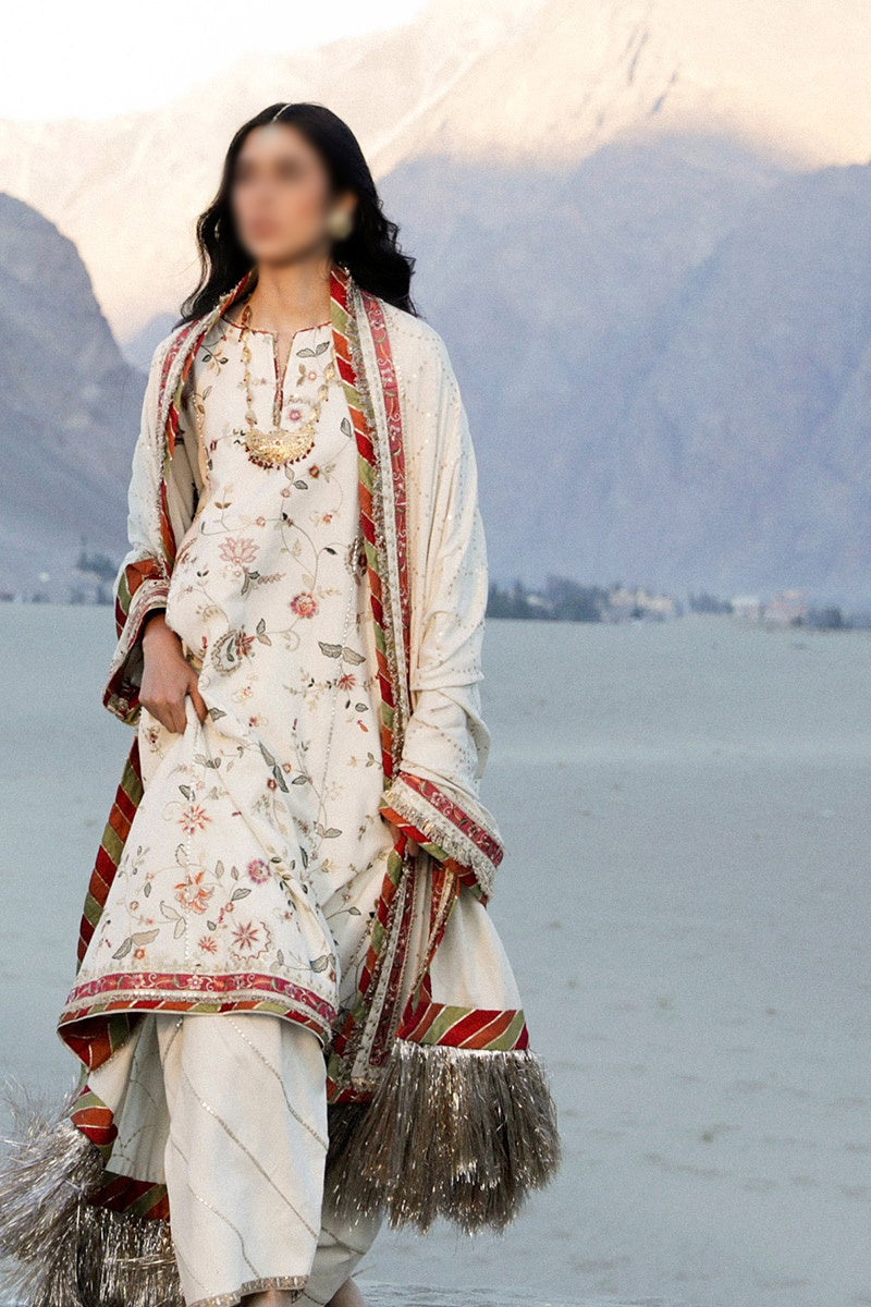 Zara Shahjahan Winter Shawl Collection 2023 has been styled in the image for photography and illustrative purposes.