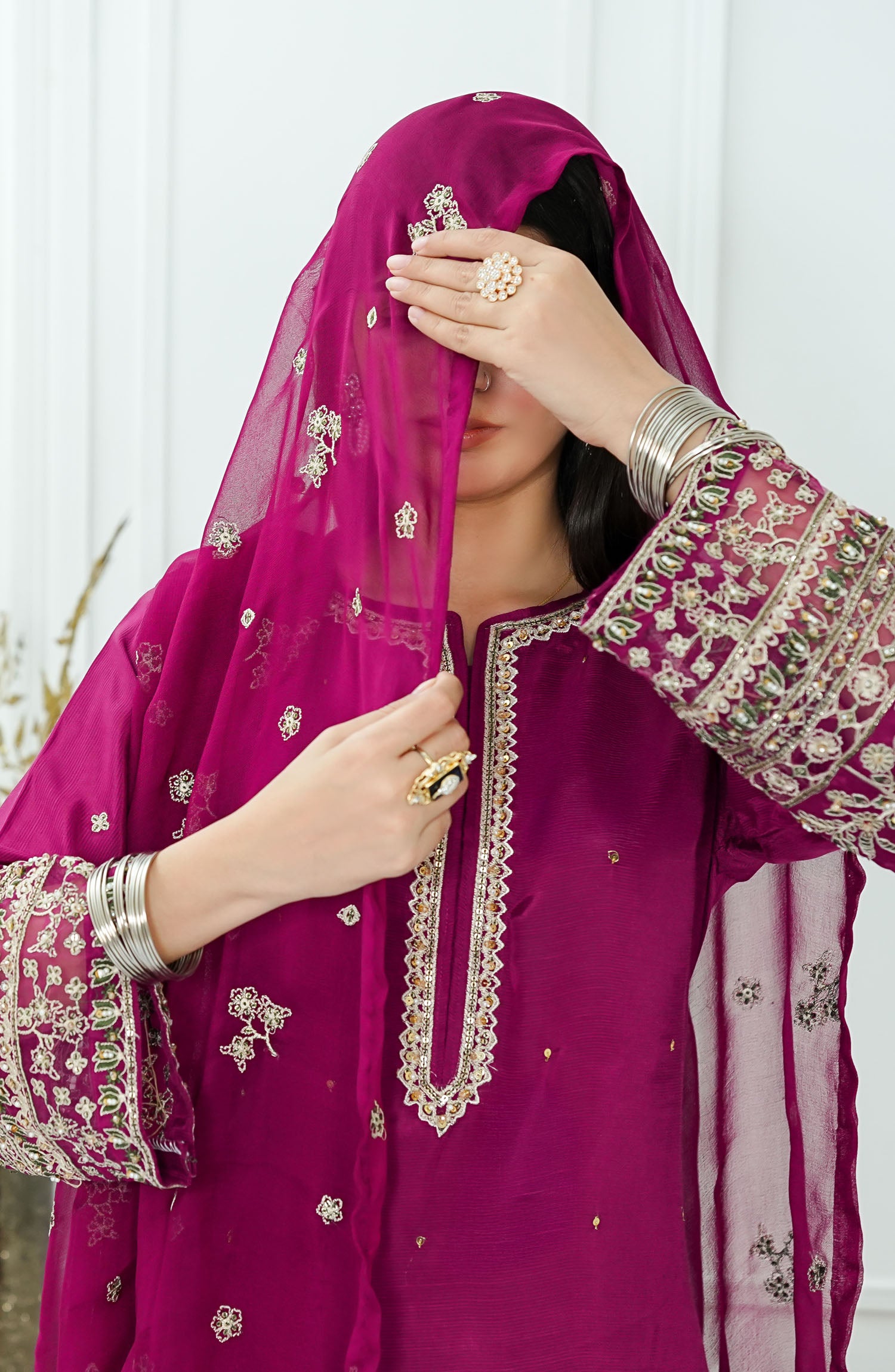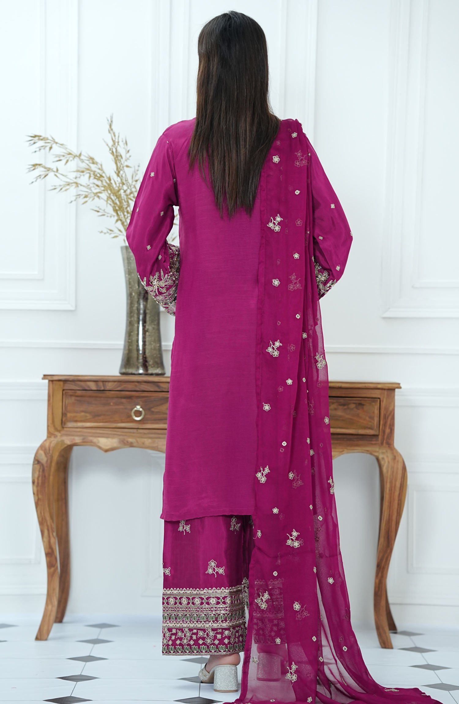 Exclusive Embroidered Stitched Pure Raw Silk Shirt with hand work.