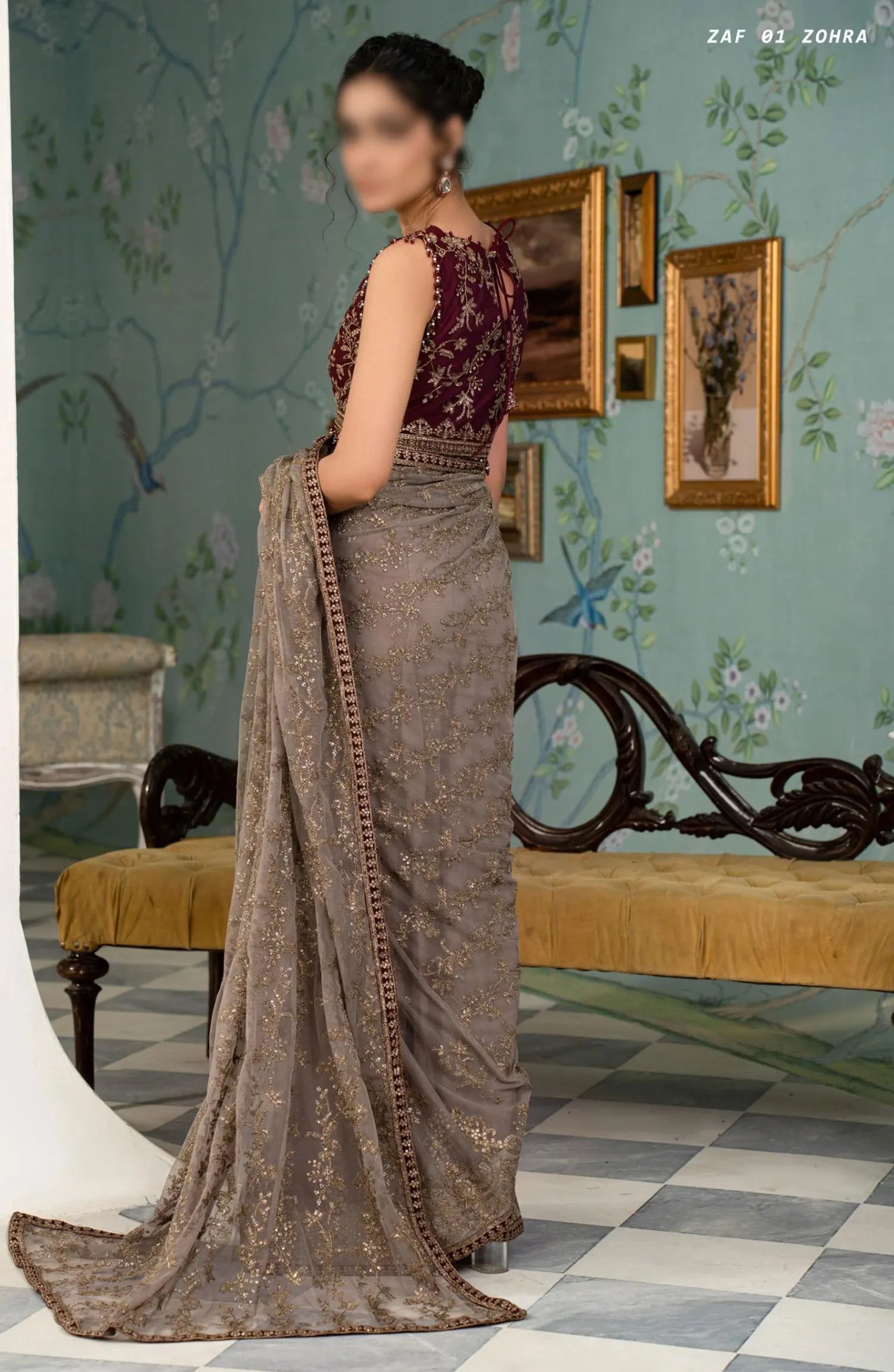 Zarif Afsanah Formal Edit Collection 2024 has been styled in the image for photography and illustrative purposes.