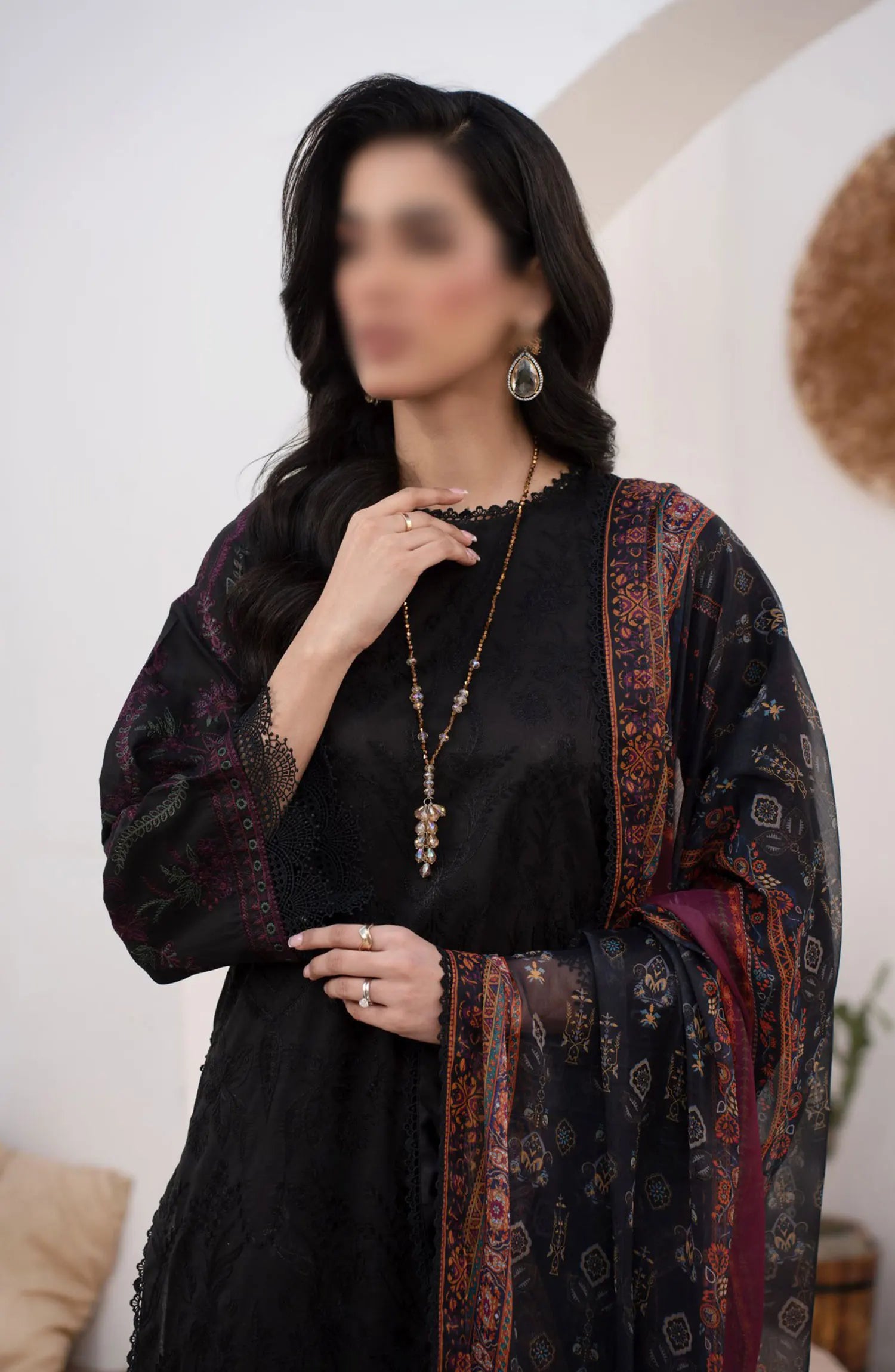 Modest Embroidered Khaddar Stitched 3 Piece Suit - 9990-Blk - MOD25WNT - Black - Winter Collection