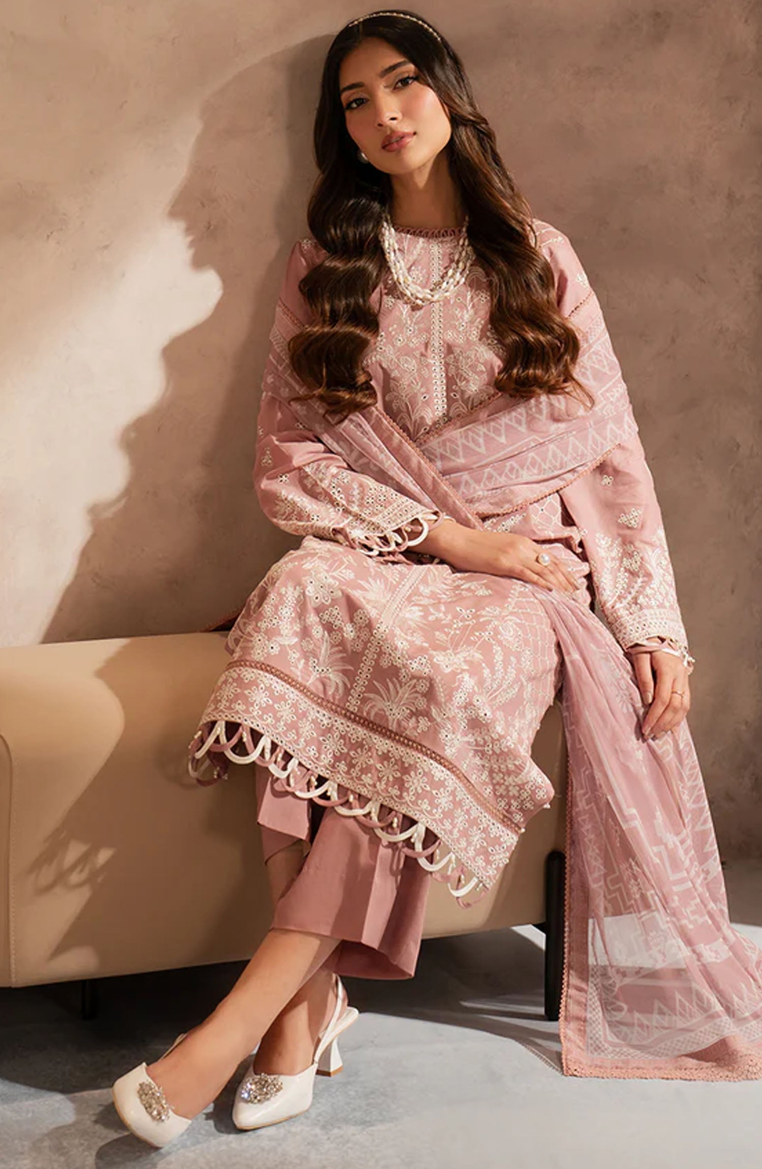 Home Zarif Embroidered Lawn Unstitched 3 Piece Suit - UNST-LWN-07 ANEEMA - ZF25CL - Pink - Summer Collection