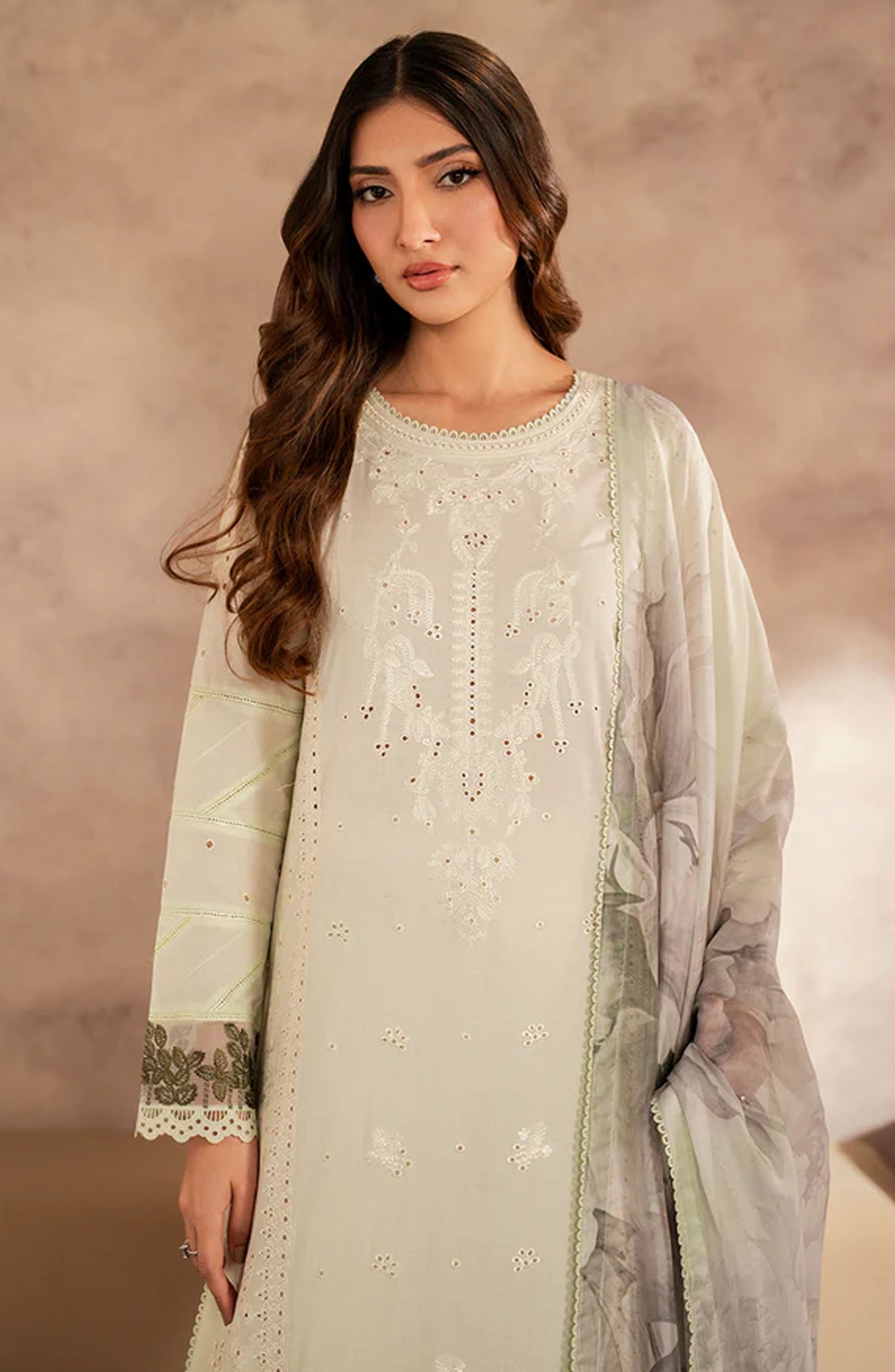 Zarif Embroidered Lawn Unstitched 3 Piece Suit - UNST-LWN-08 ROOHAL - ZF25CL - White - Summer Collection