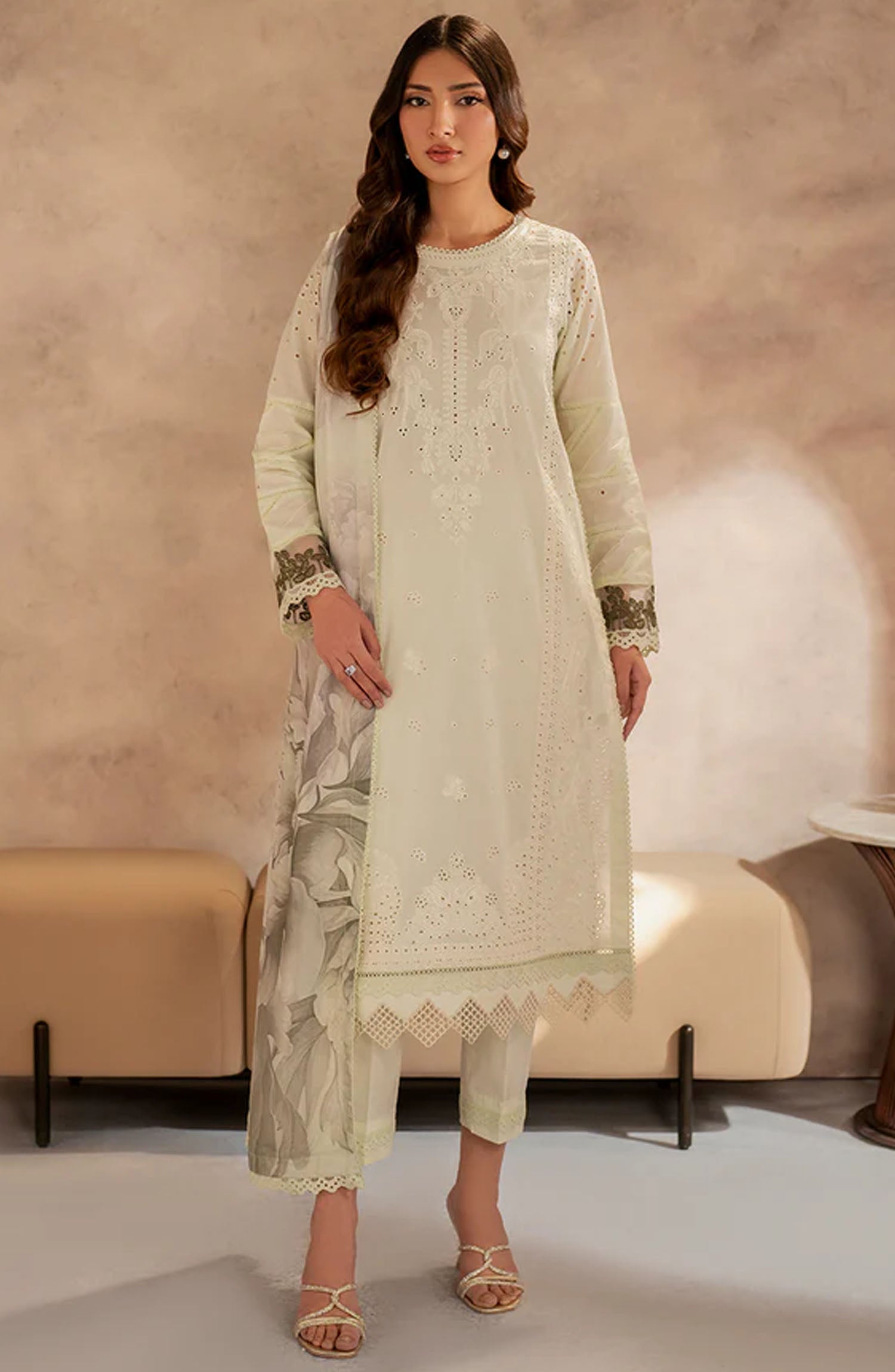 Home Zarif Embroidered Lawn Unstitched 3 Piece Suit - UNST-LWN-08 ROOHAL - ZF25CL - White - Summer Collection