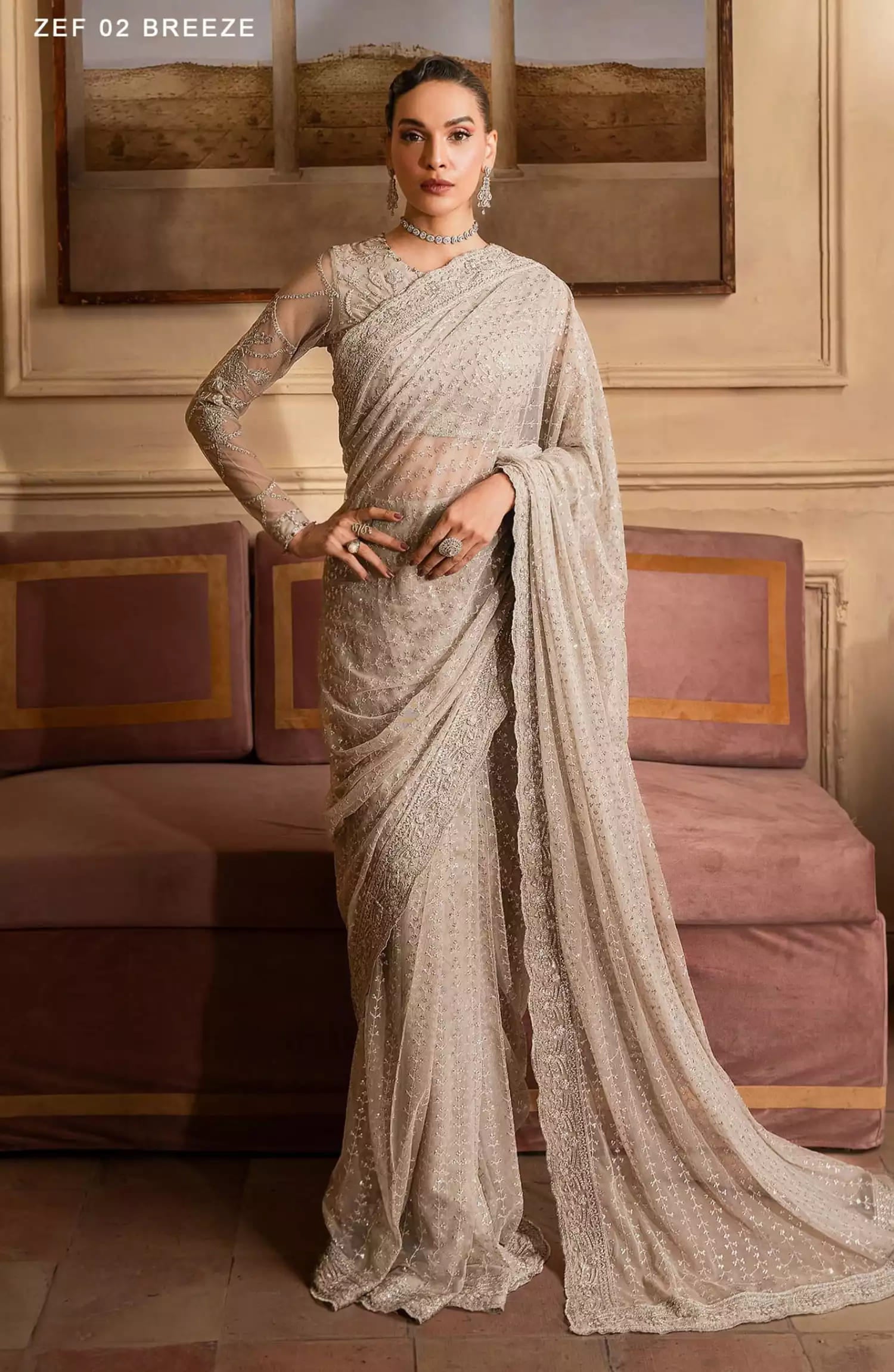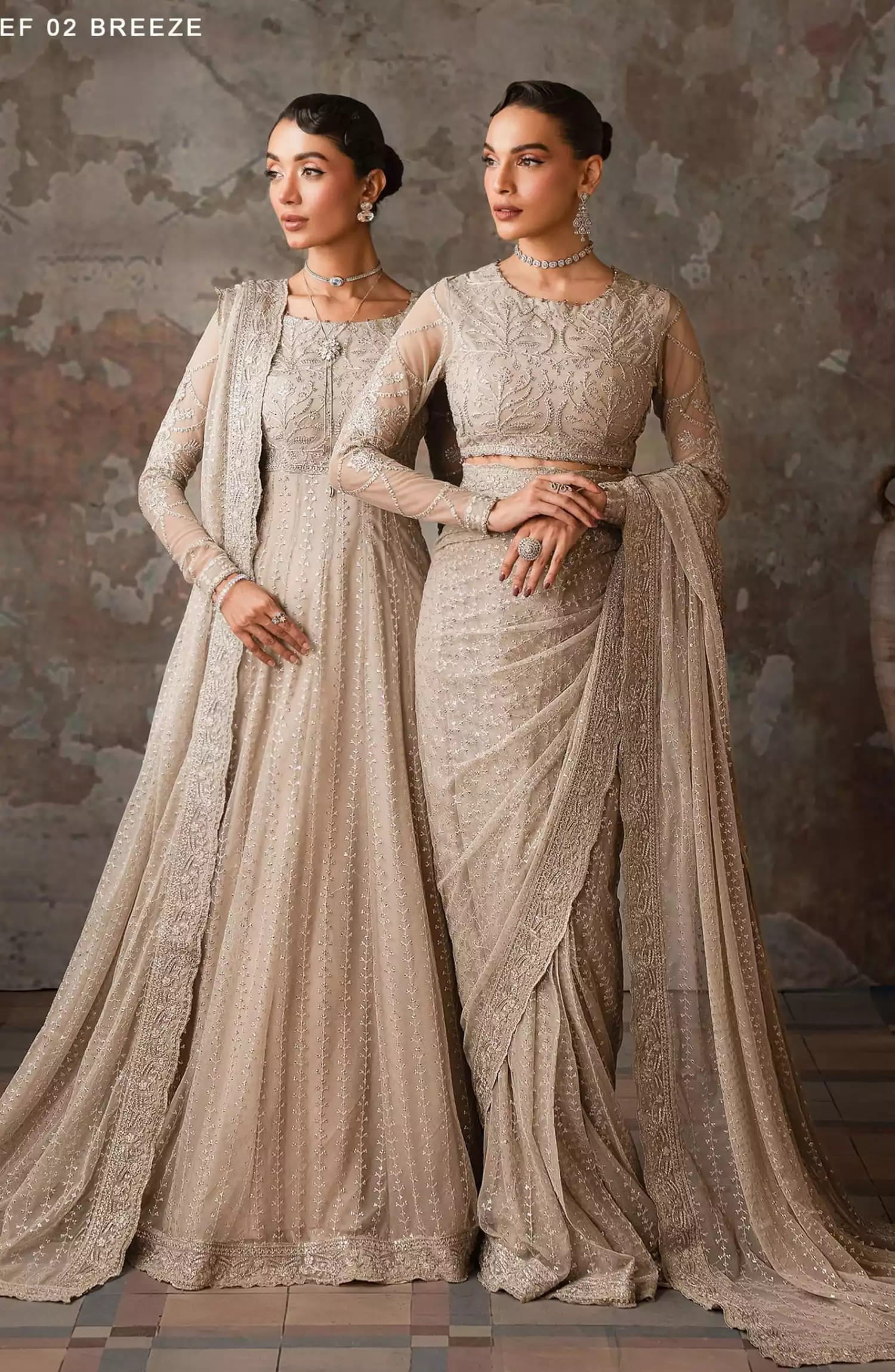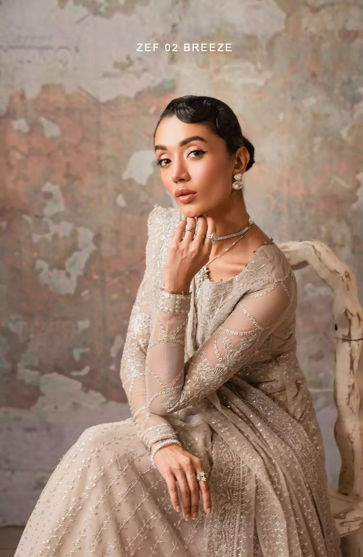 Zarif Emirah Unstitched Formals Collection has been styled in the image for photography and illustrative purposes.
