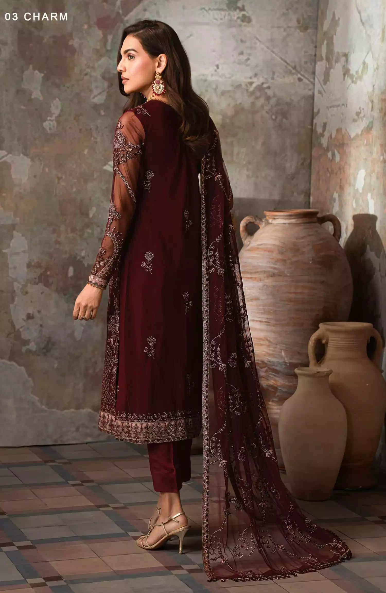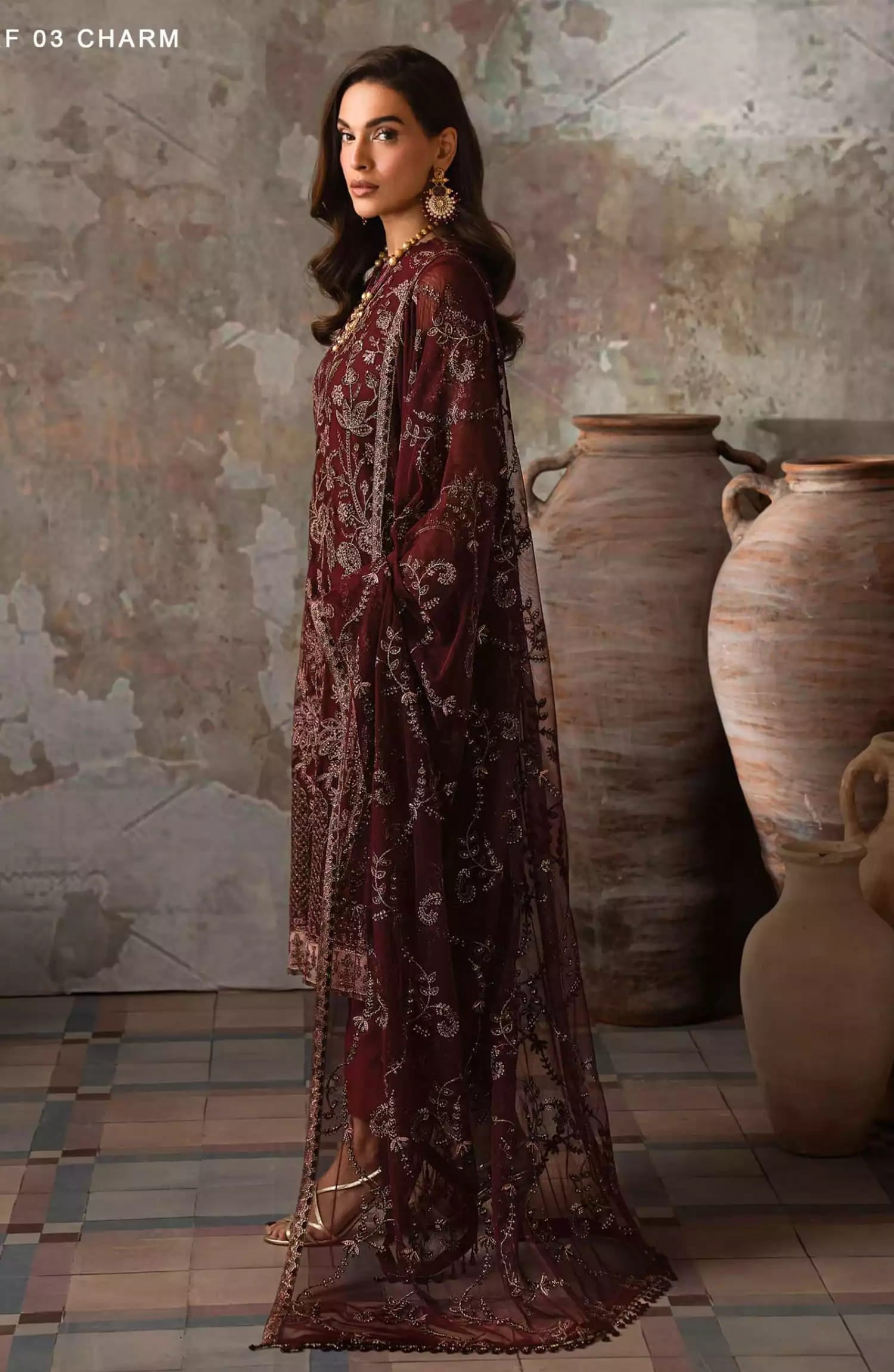 Zarif Emirah Unstitched Formals Collection has been styled in the image for photography and illustrative purposes.