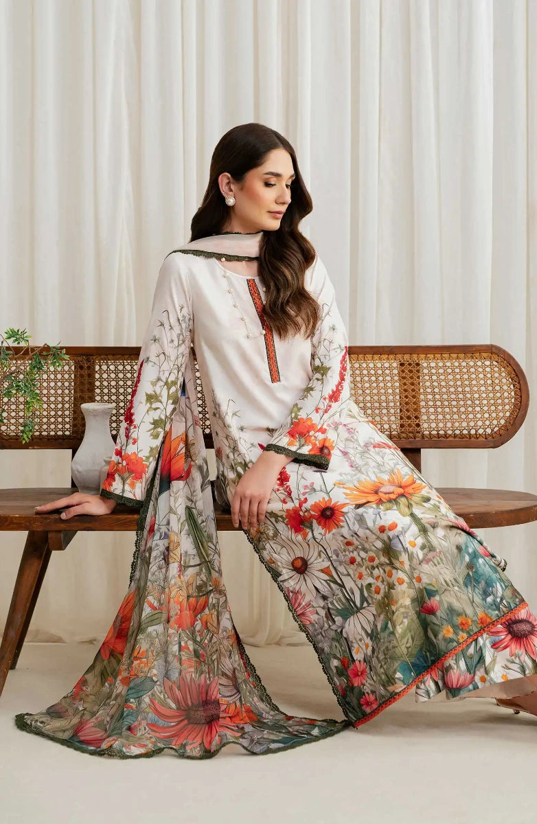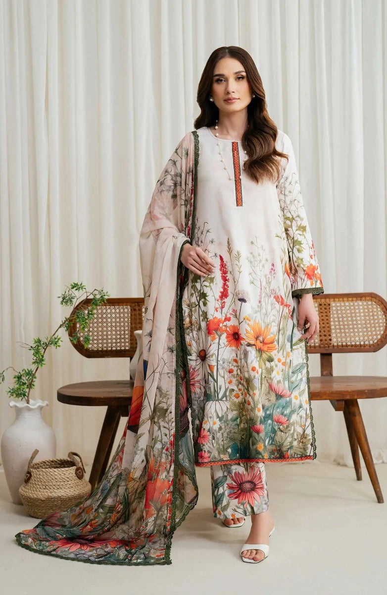 Ayla Printed Lawn Jacquard Stitched 3 Piece Suit - Gulnaar Wave - AY26ED - Orange - Eid Collection