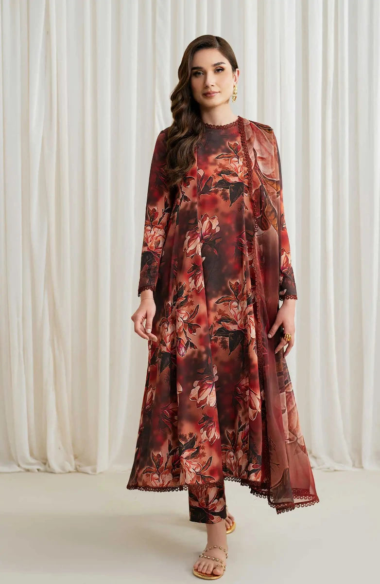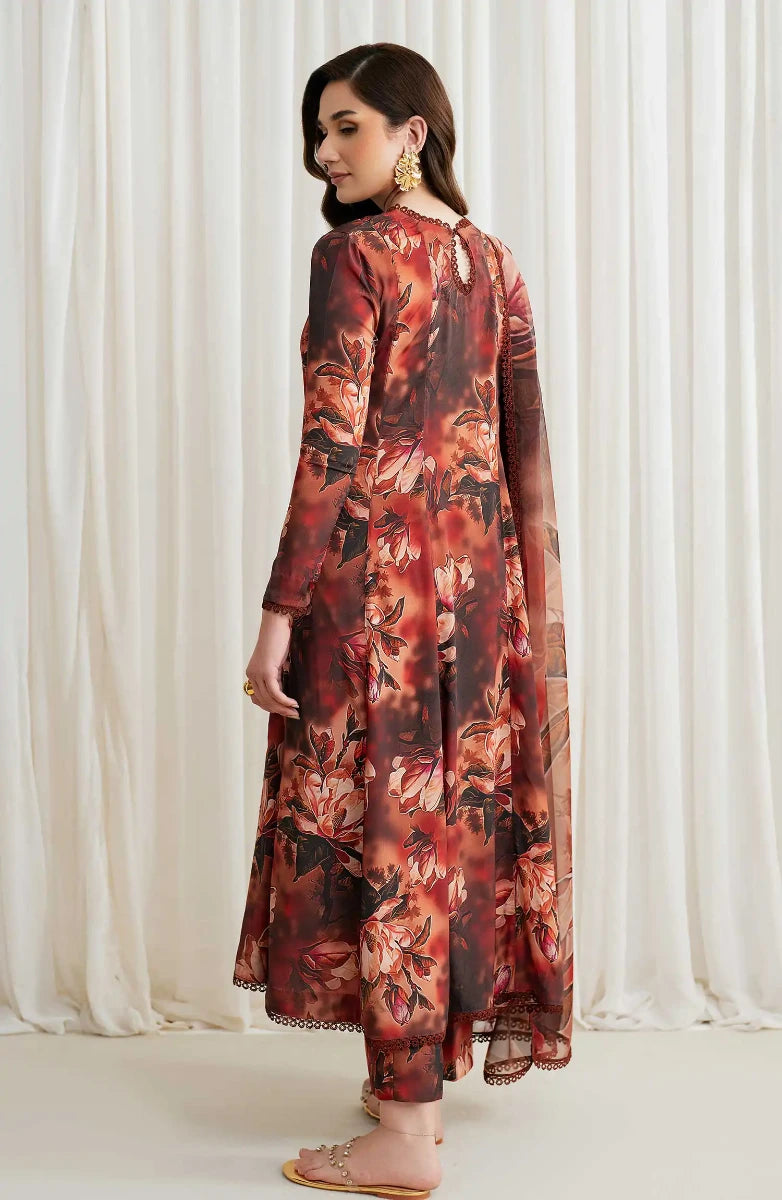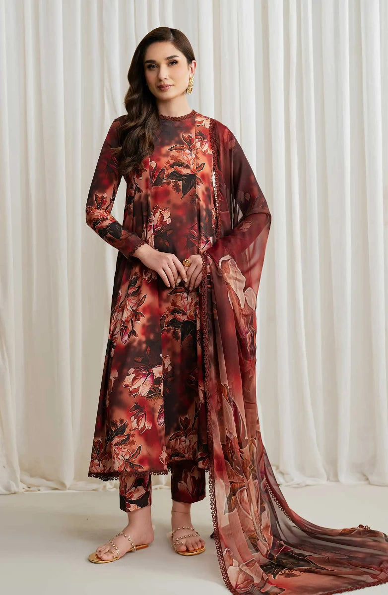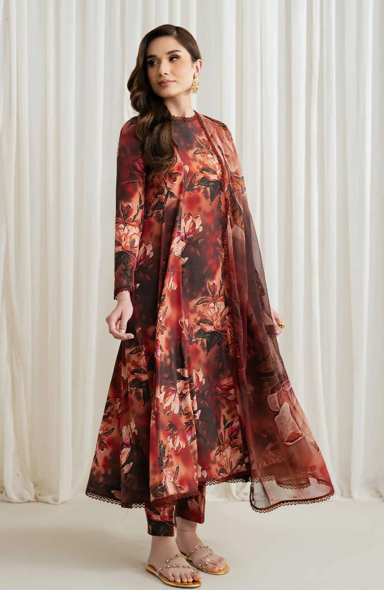 Ayla Printed Lawn Jacquard Stitched 3 Piece Suit - Gulnaar Wave - AY26ED - Orange - Eid Collection
