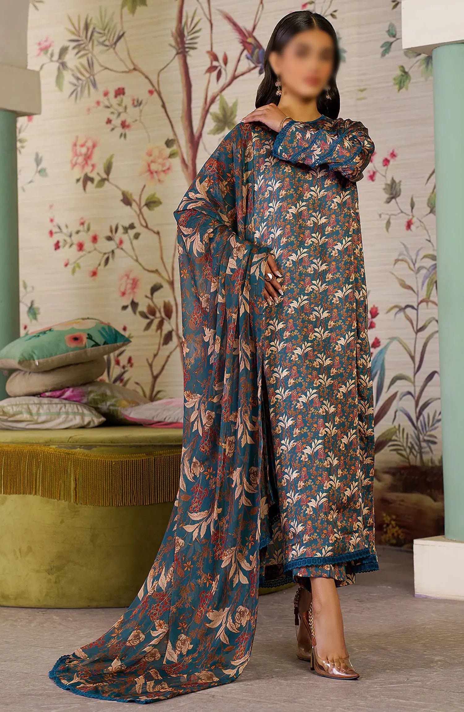 Zarif Printed Unstitched Printed Silk Collection 2024 has been styled in the image for photography and illustrative purposes.