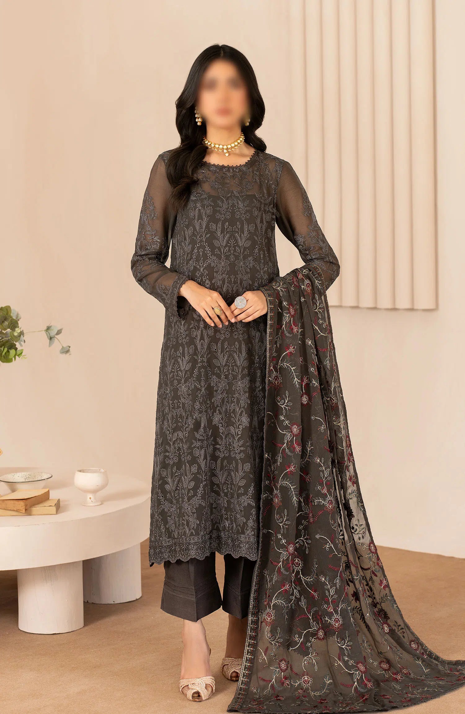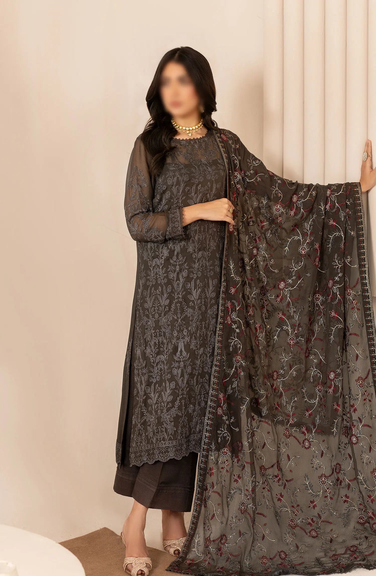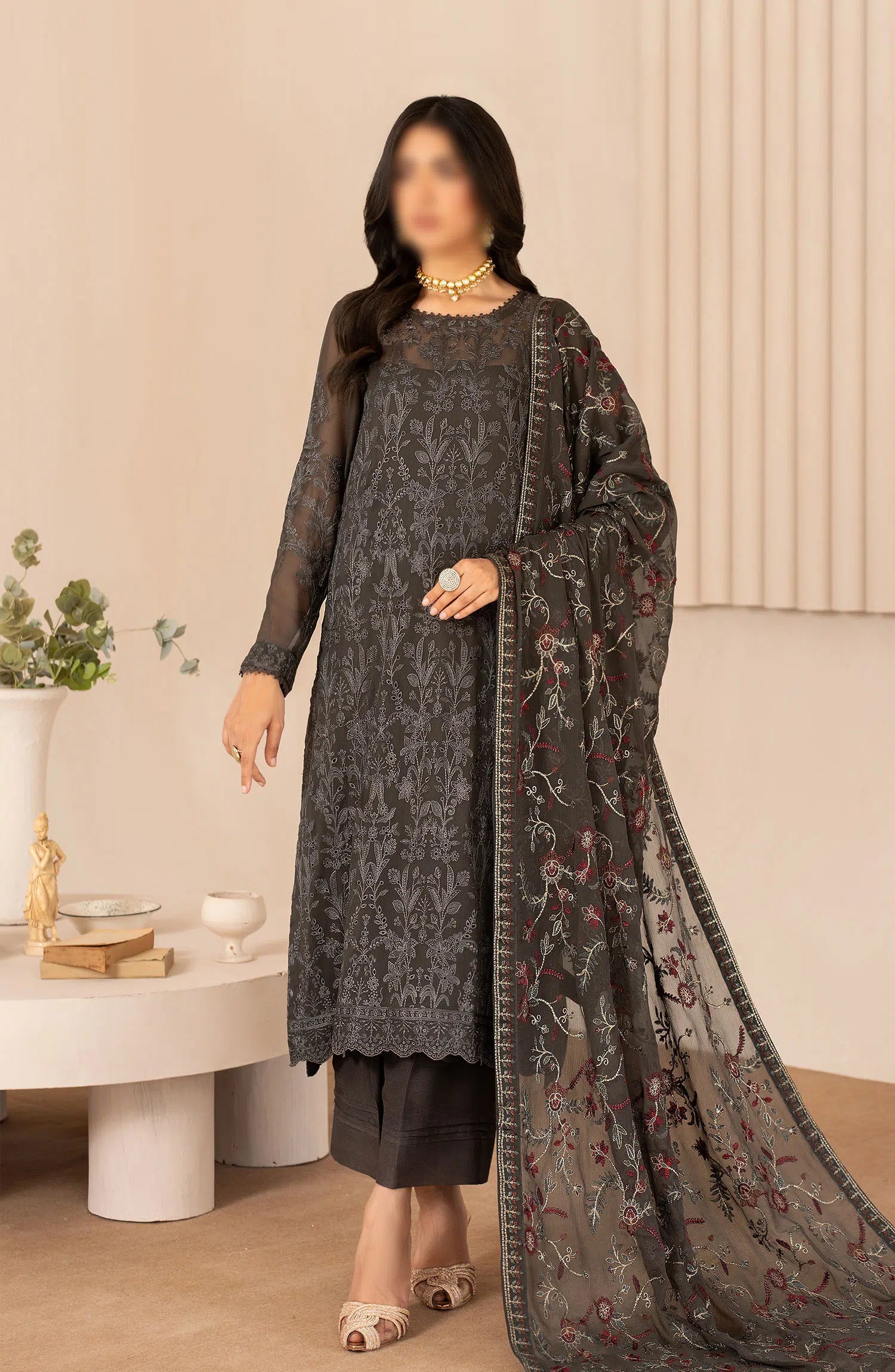 Zarif Thread Work Unstitched Chiffon Edit has been styled in the image for photography and illustrative purposes.