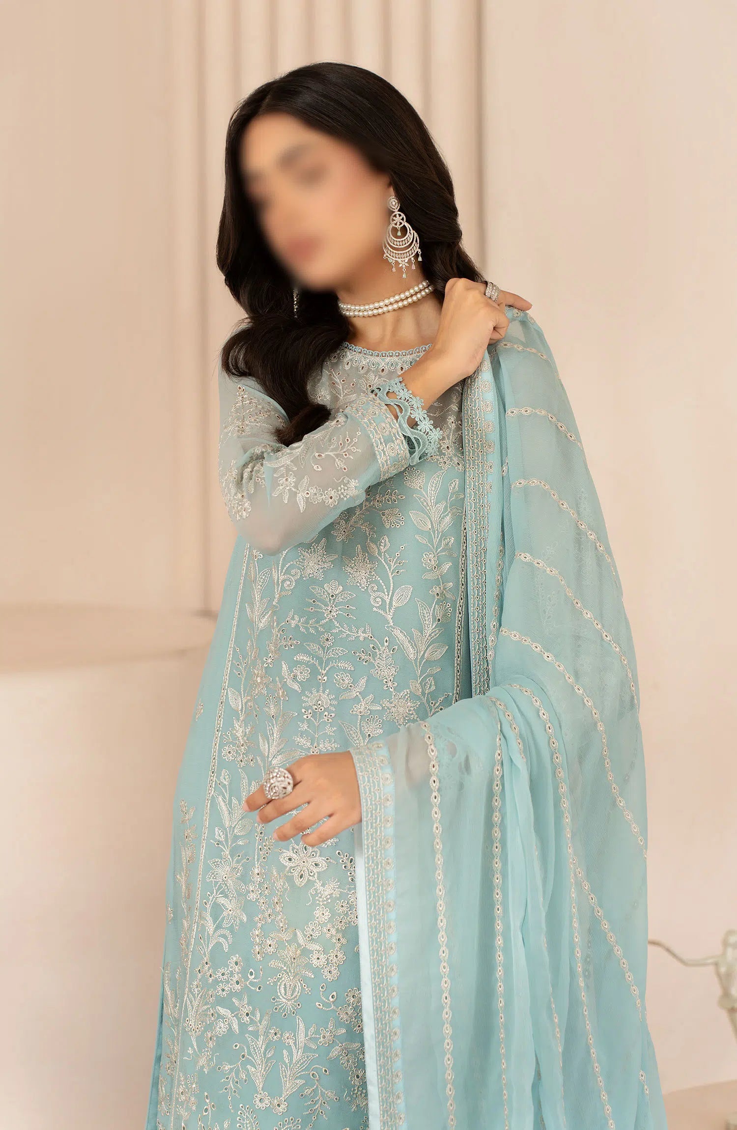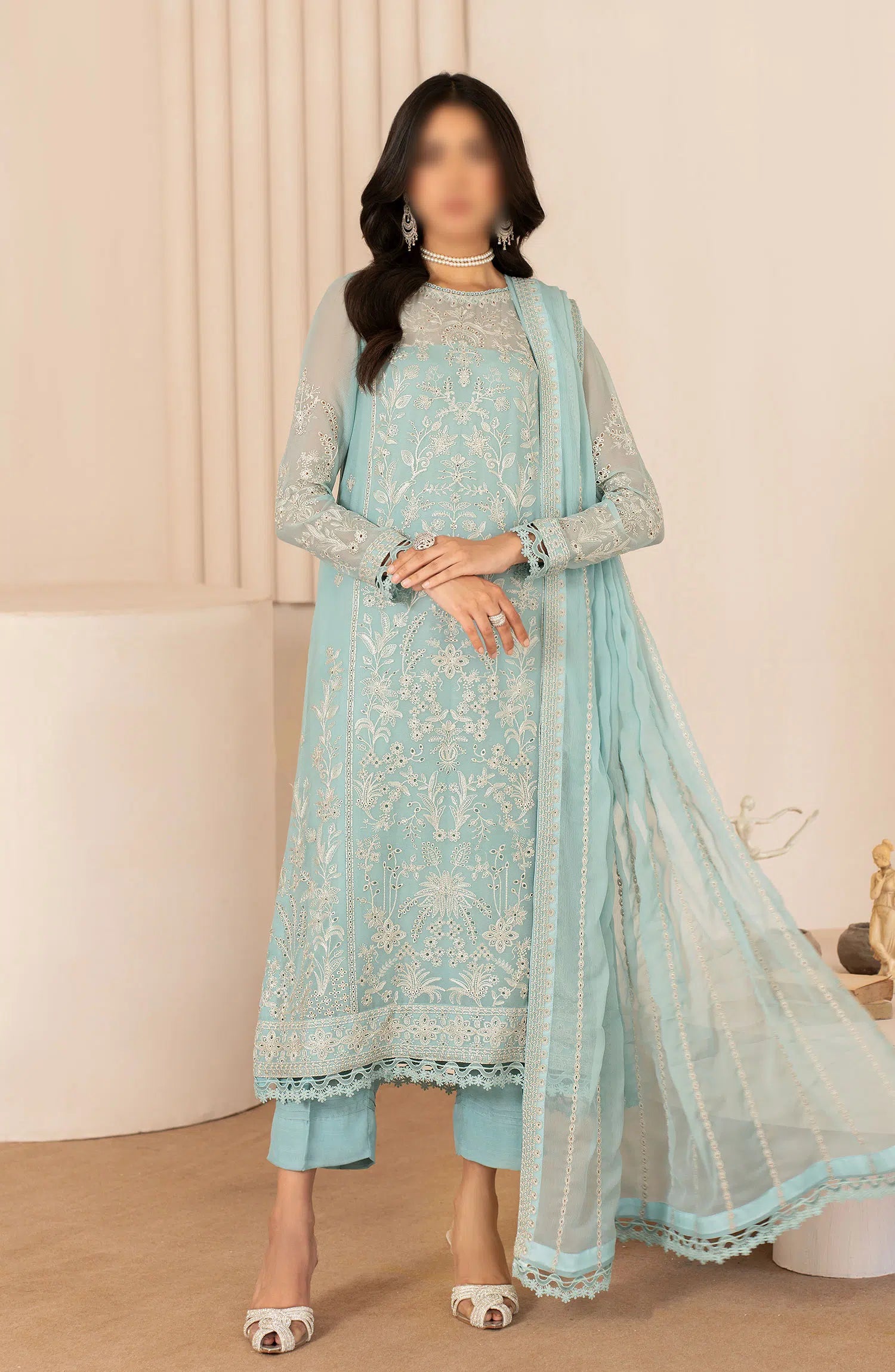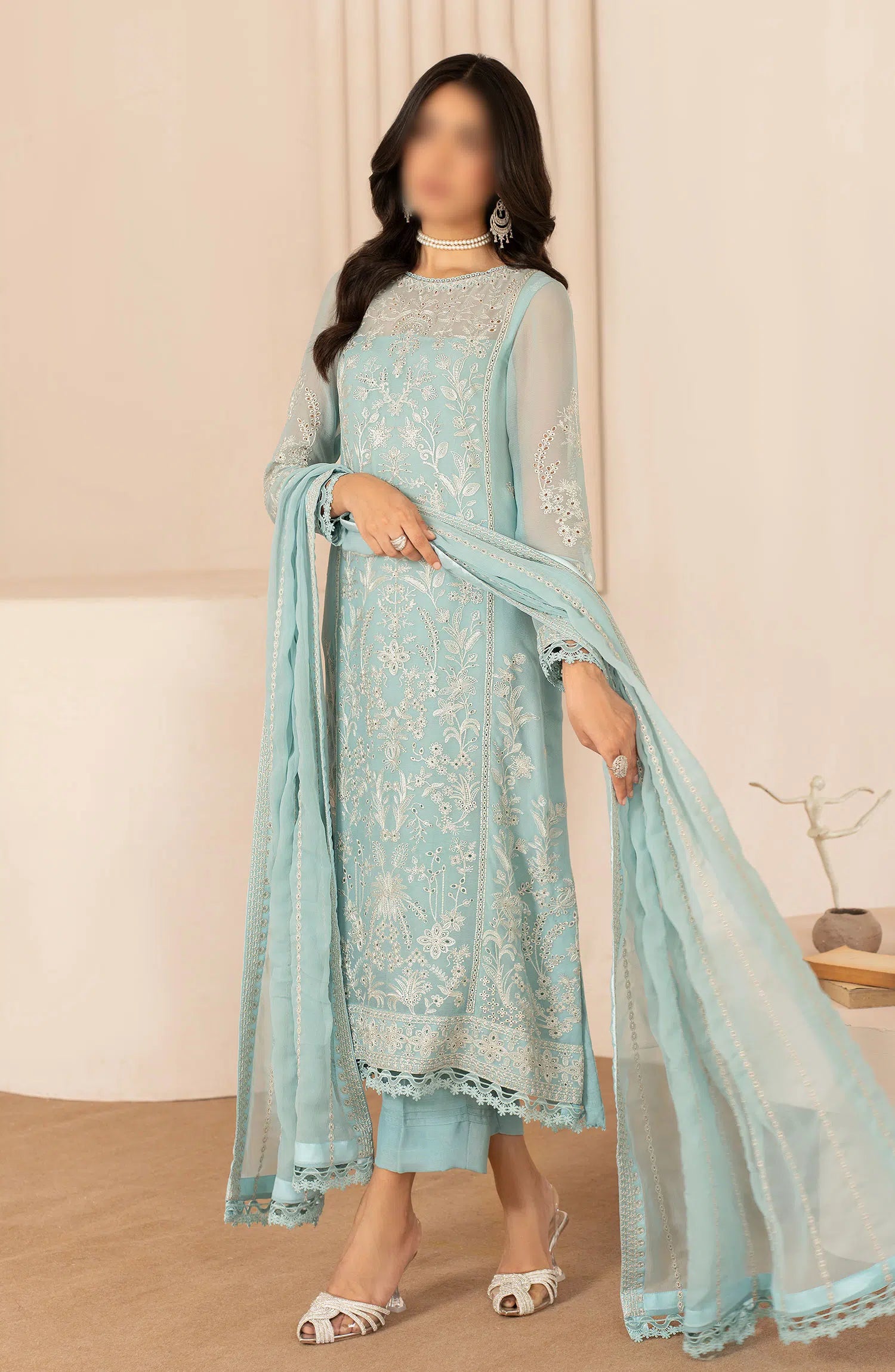 Zarif Thread Work Unstitched Chiffon Edit has been styled in the image for photography and illustrative purposes.