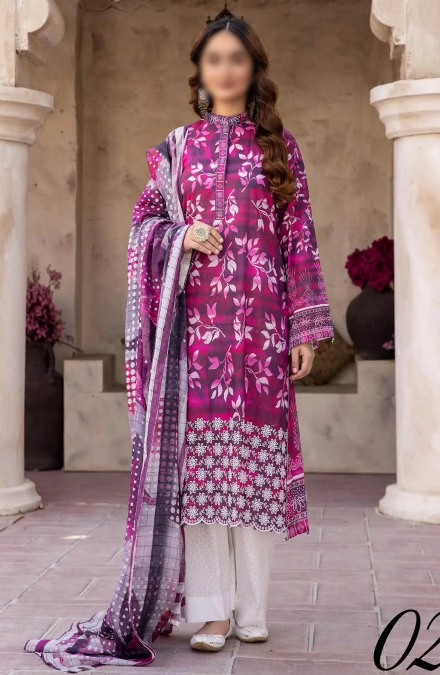Zarkis Embroidered Lawn Collection 2024 By Riaz Arts - Design 02