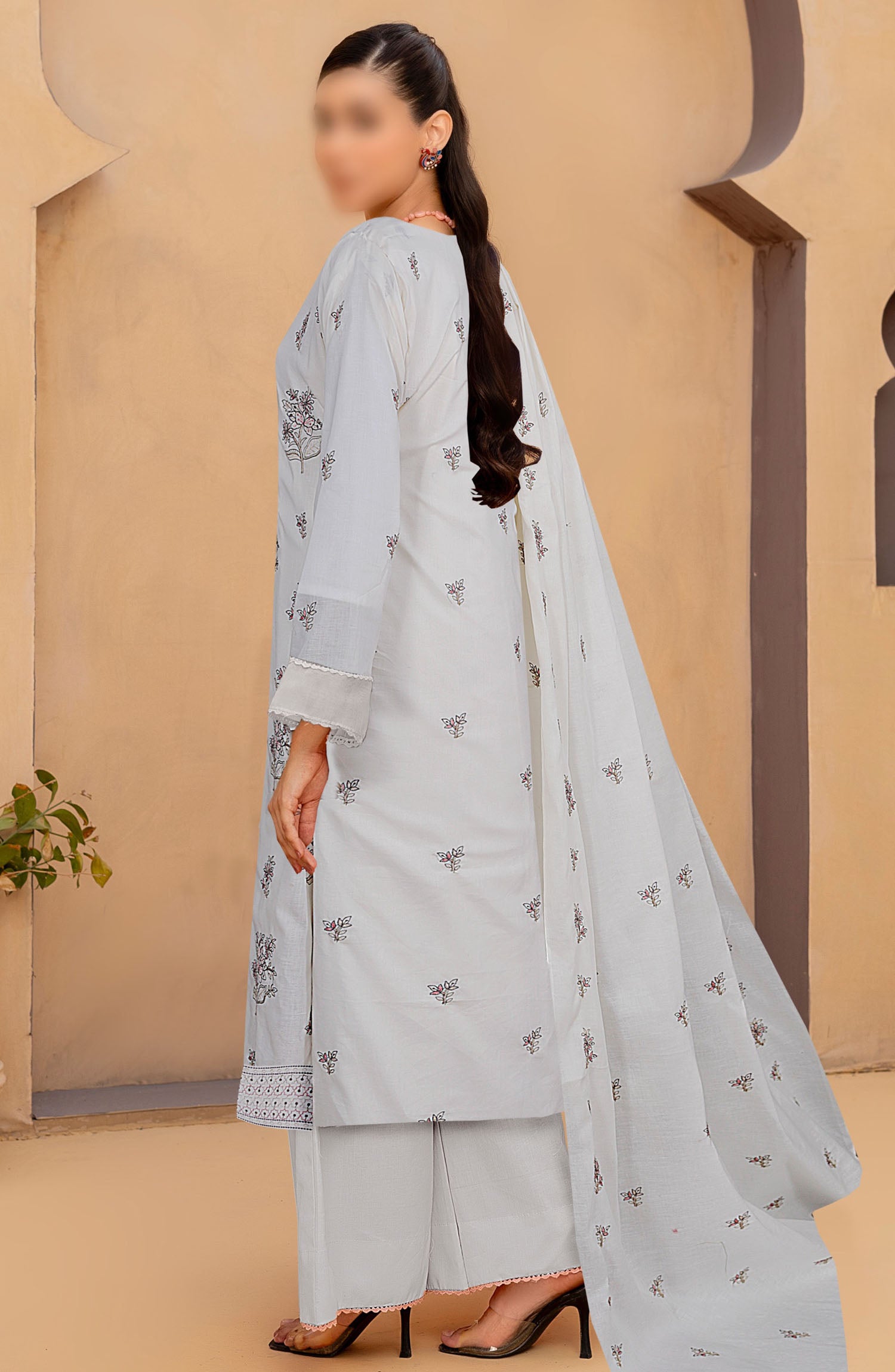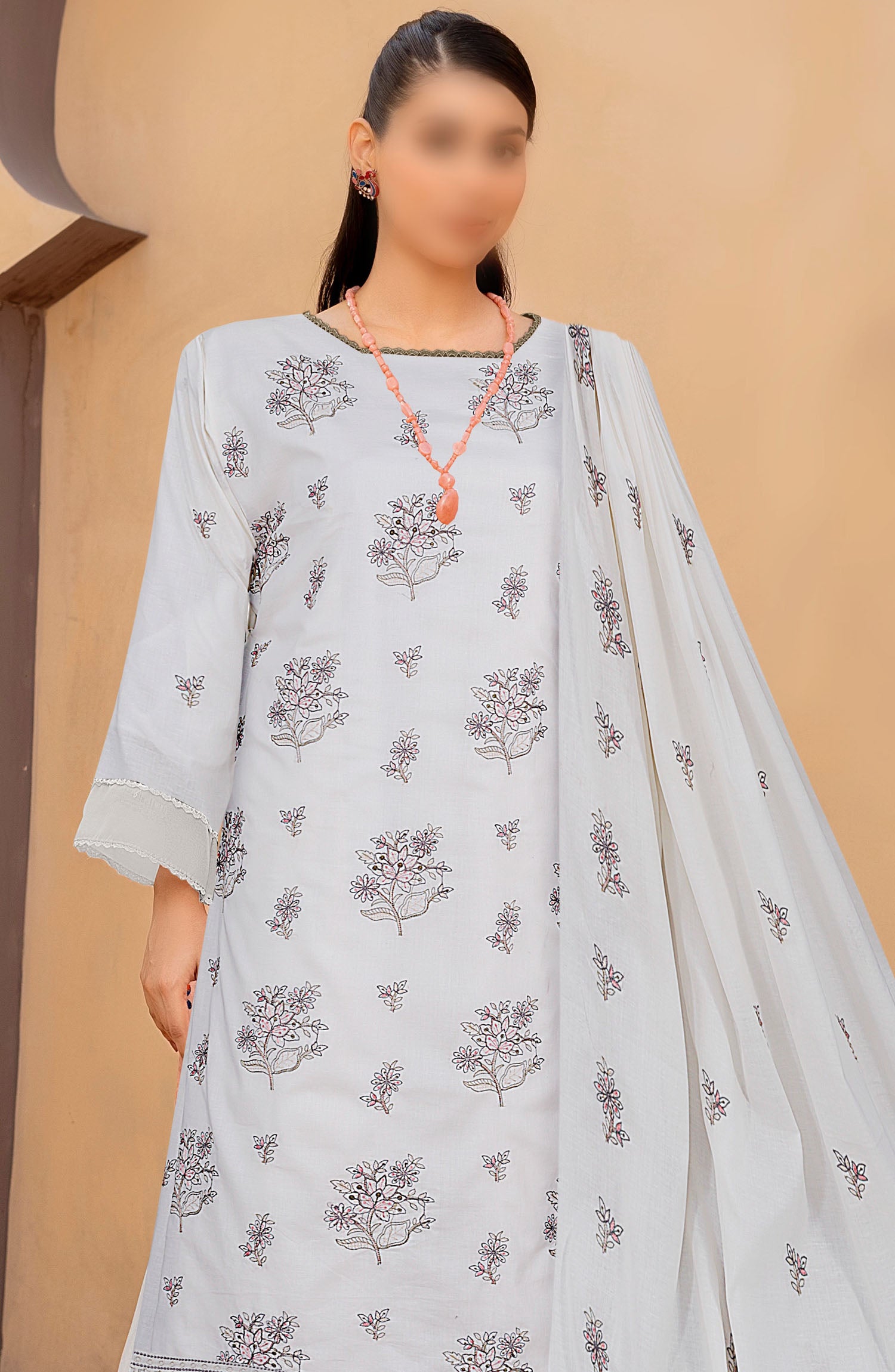 Home Zarqa by Al karim Embroidered Lawn Unstitched 3 Piece Suit - D-04 - ALK25ZV1 - White - Summer Collection