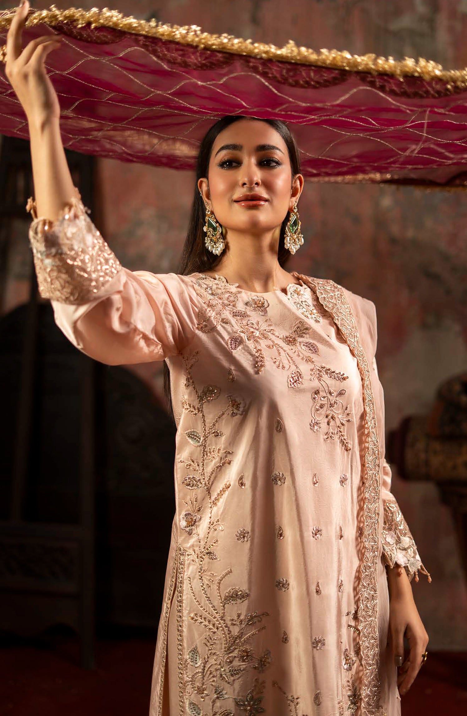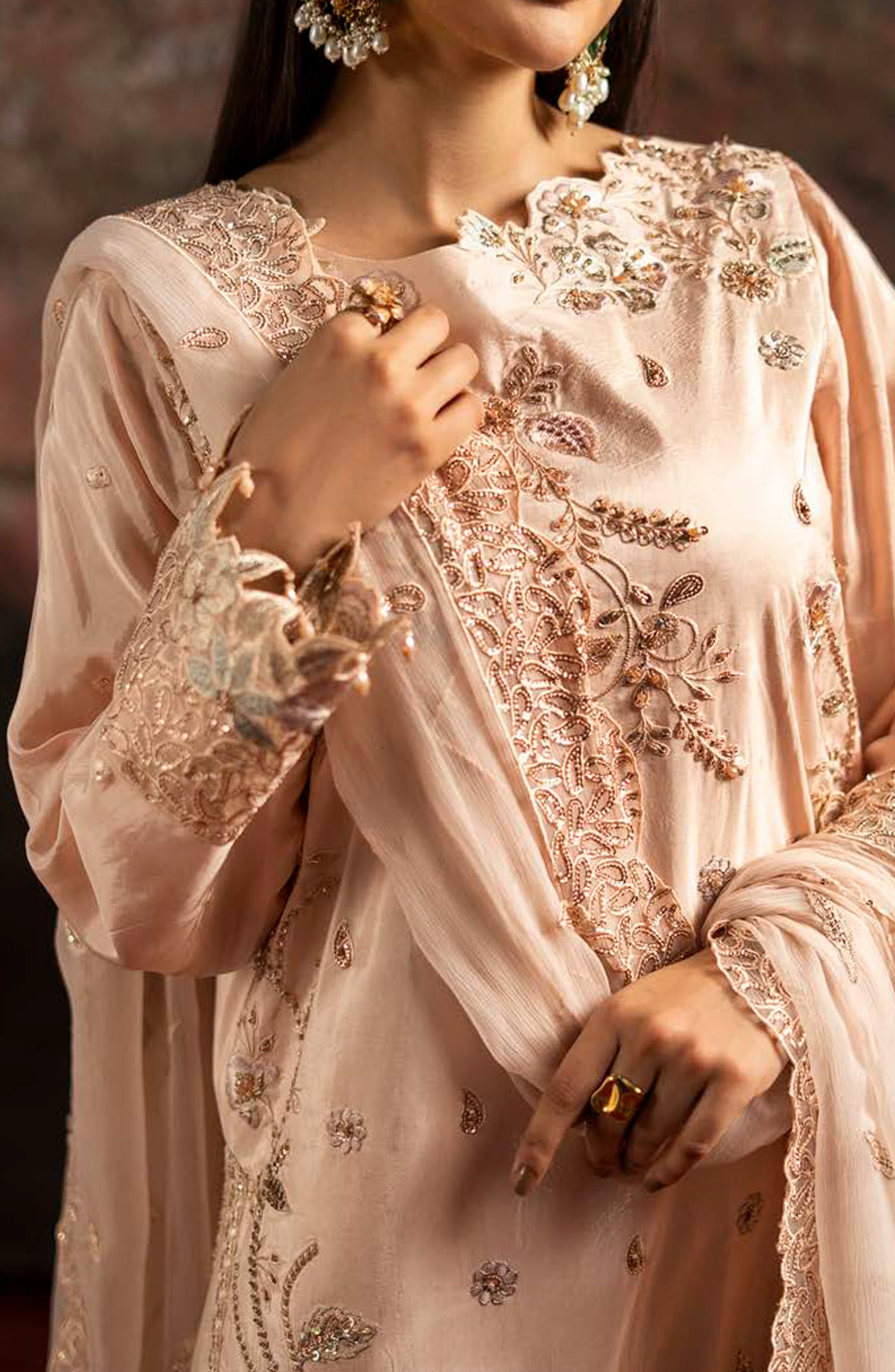 EMBROIDERED TASSAL SILK SLEEVES 0.67 YDS