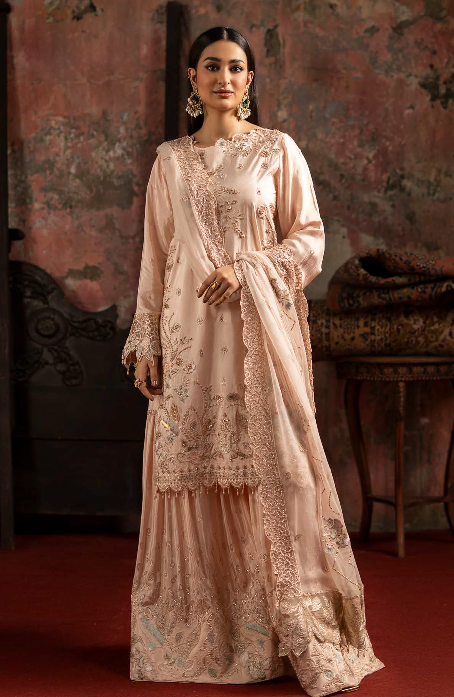 EMBROIDERED CHIFFON FOUR SIDE BODER READY DUPATTA 2.5 YDS