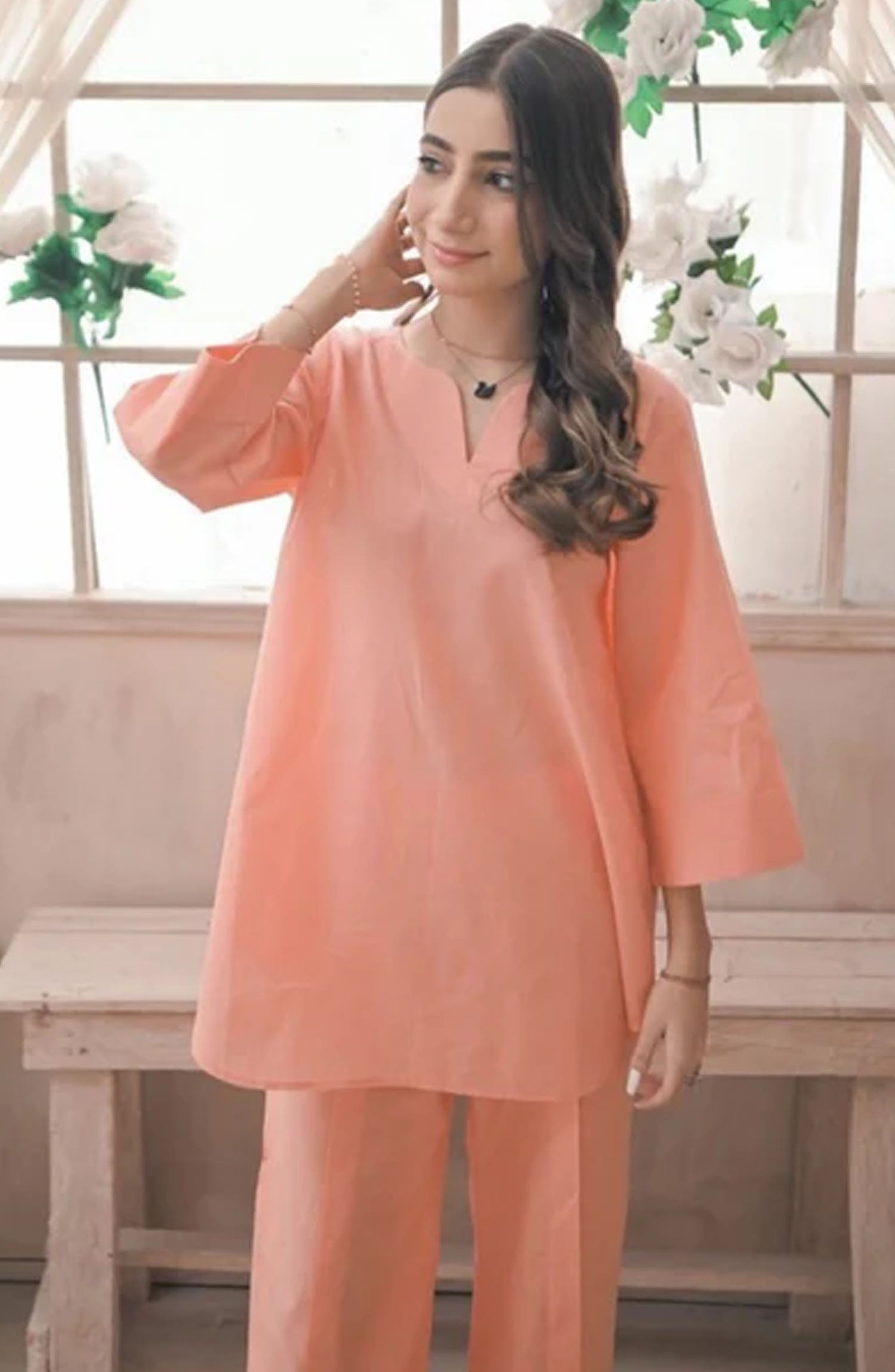 Home Zauk Casual Cotton Lawn 2 Piece Suit - Peach - ZK25CC - Peach - Casual Collection