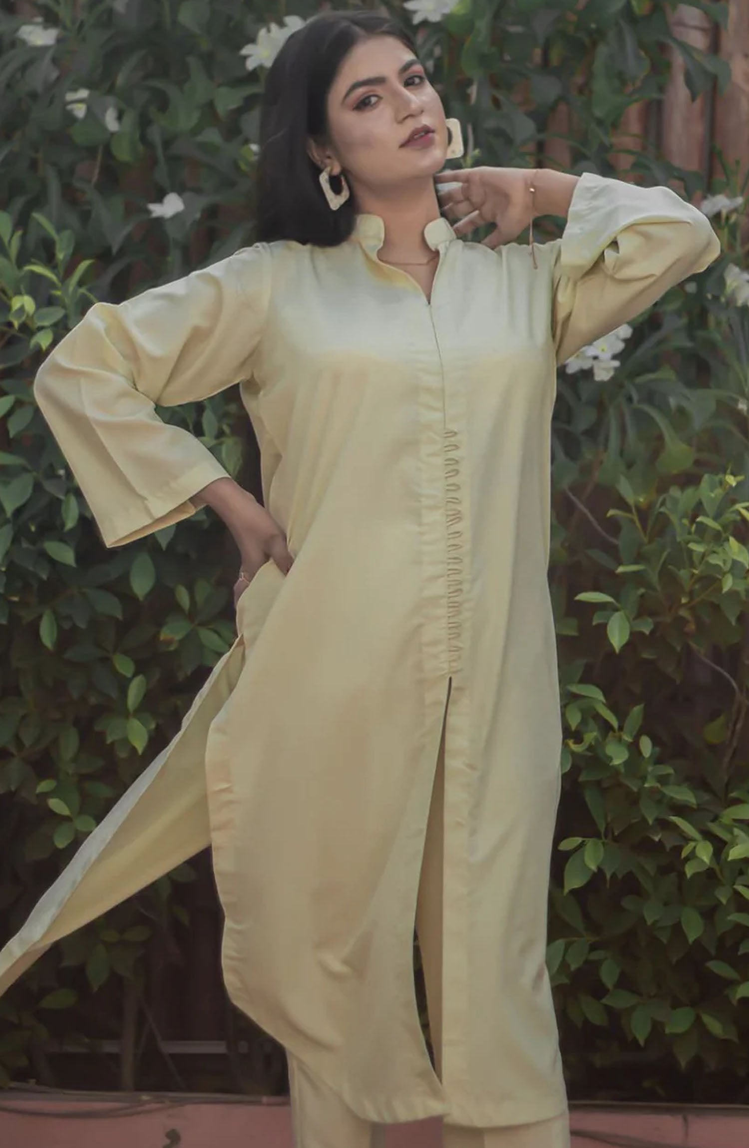Zauk Casual Georgette 2 Piece Suit - Lemon Yellow - ZK25CC - Yellow - Casual Collection