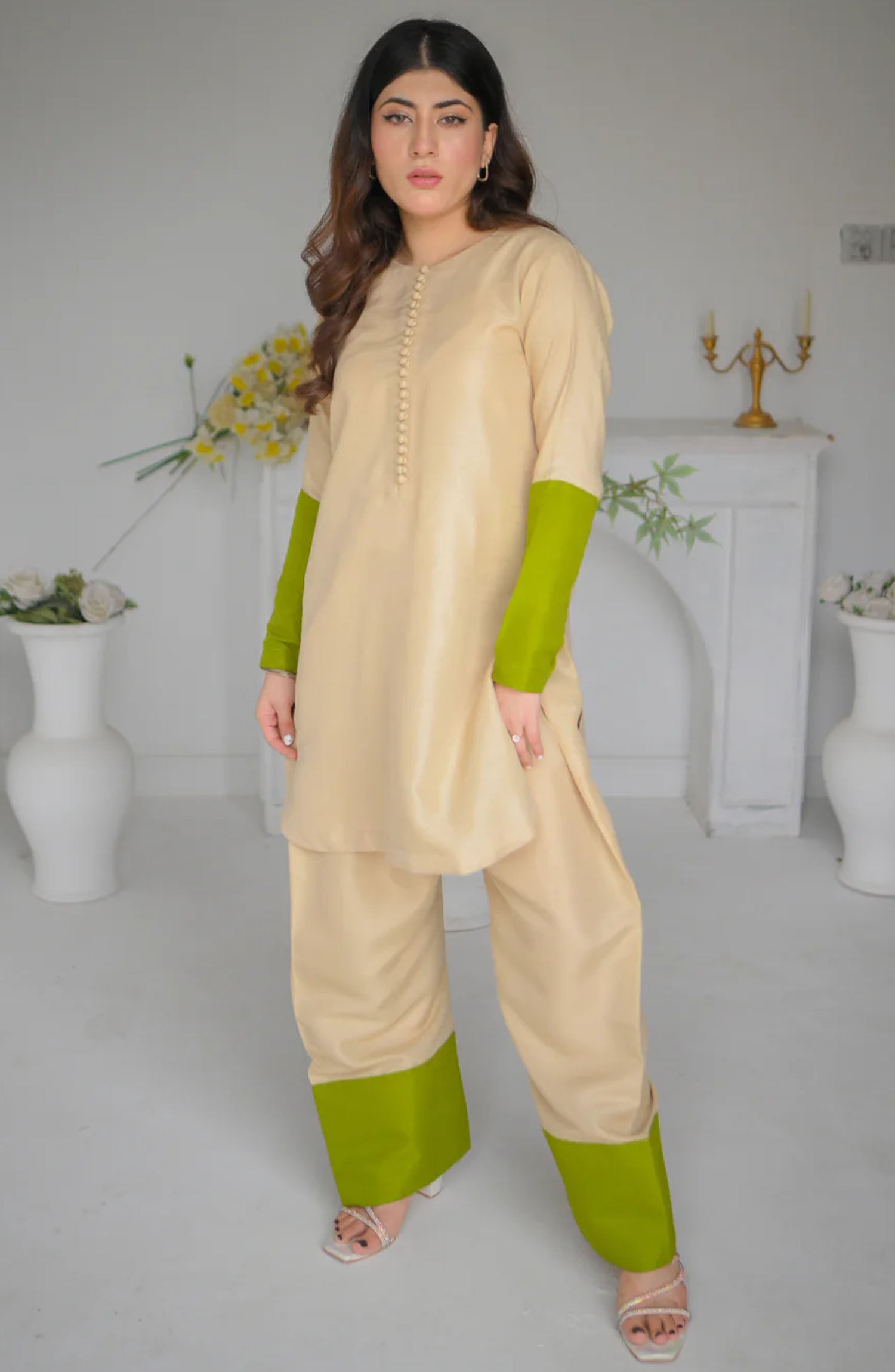 It's a two piece matching set includes a shirt along with shalwaar. actual product color may slighly vary from the image