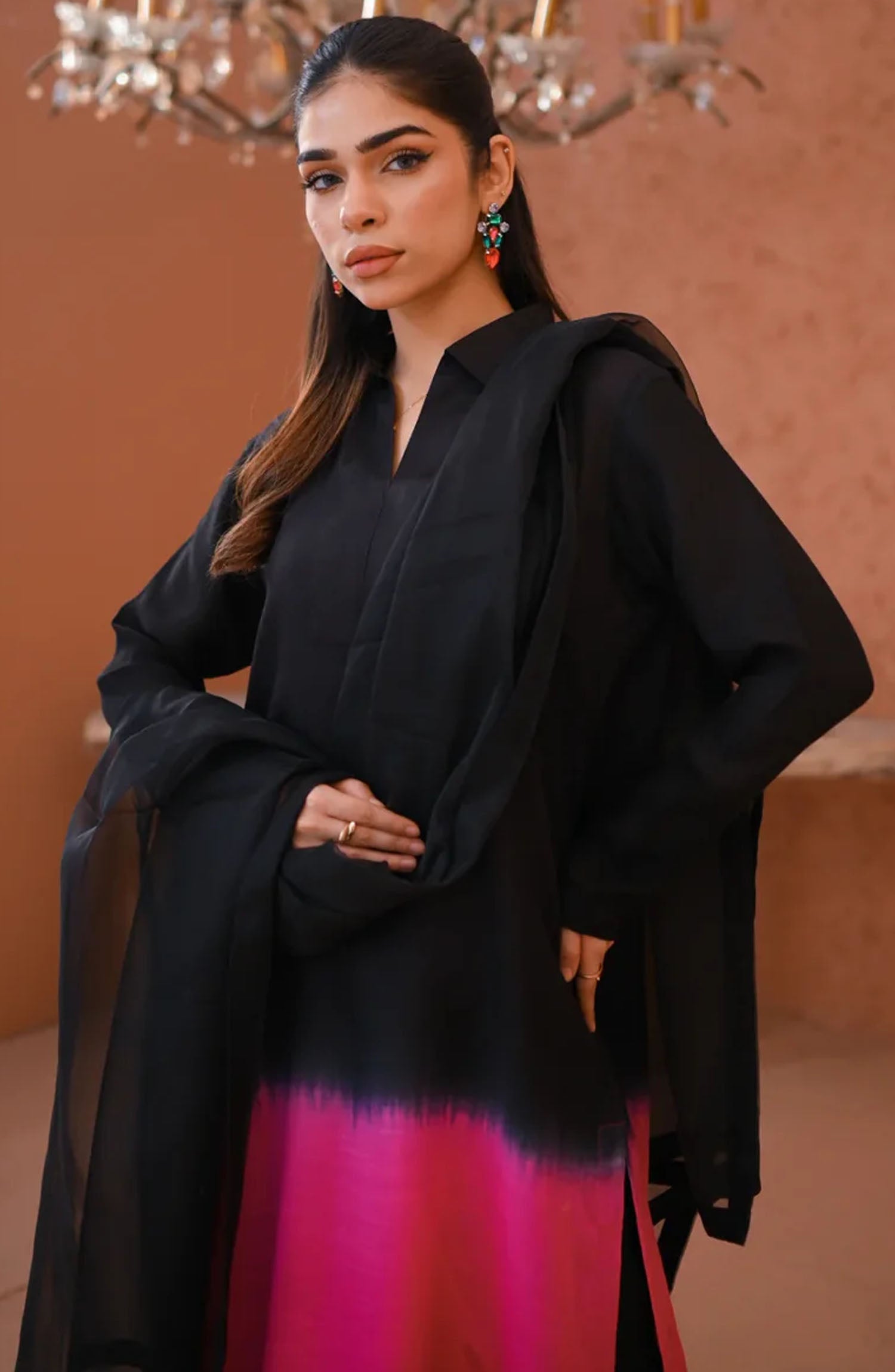 Home Zauk Casual Rawsilk Stitched 3 Piece Suit - Eve - ZK25EE - Black - Festive Collection