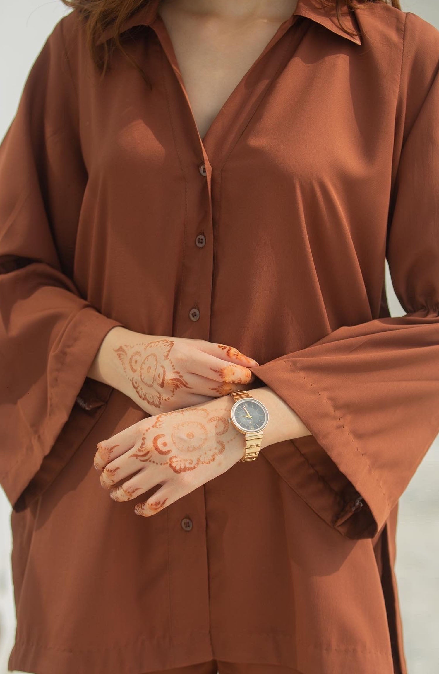 Home Zauk Georgette Stitched 2 Piece Suit - Brown Two Piece - ZK25CC - Casual Collection