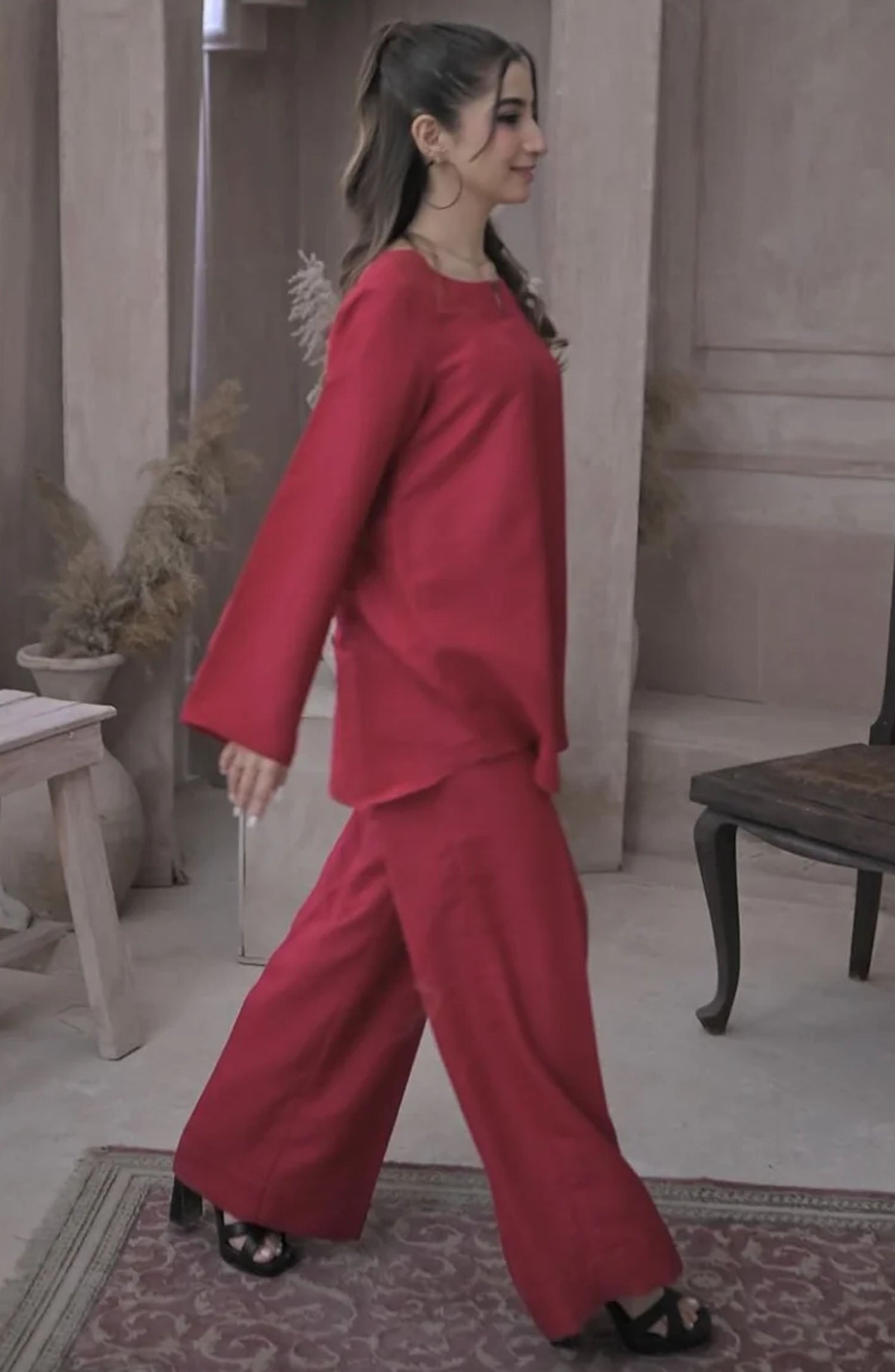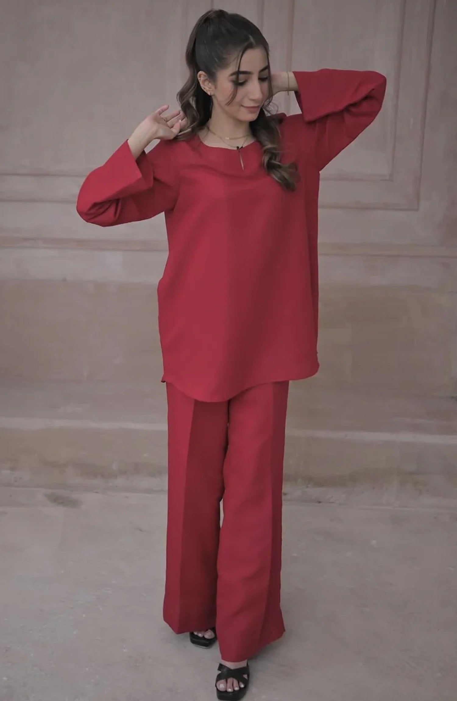 Deep pink matching set includes a short shirt along with the long cullote. actual procduct color may slightly vary from the image