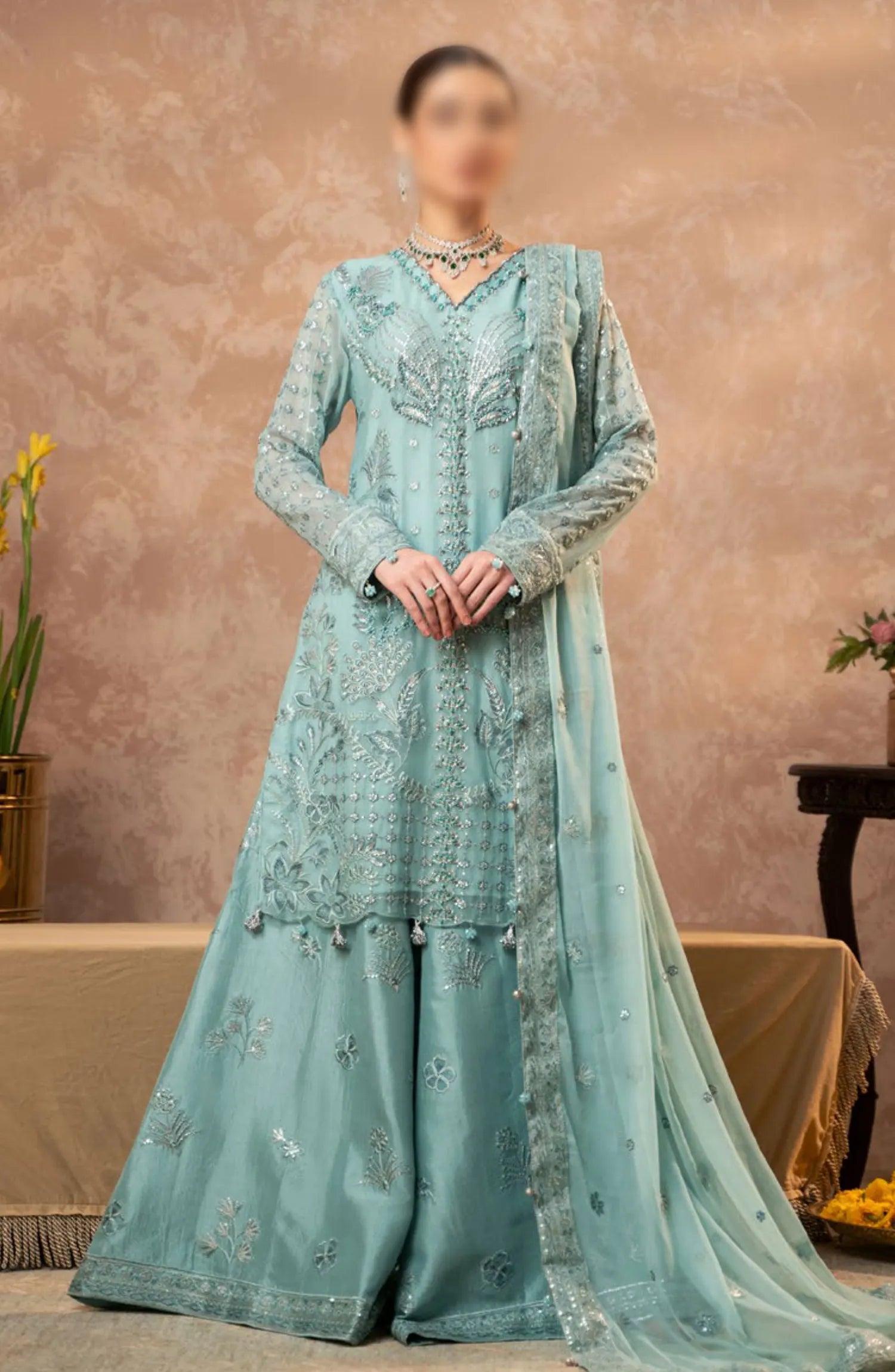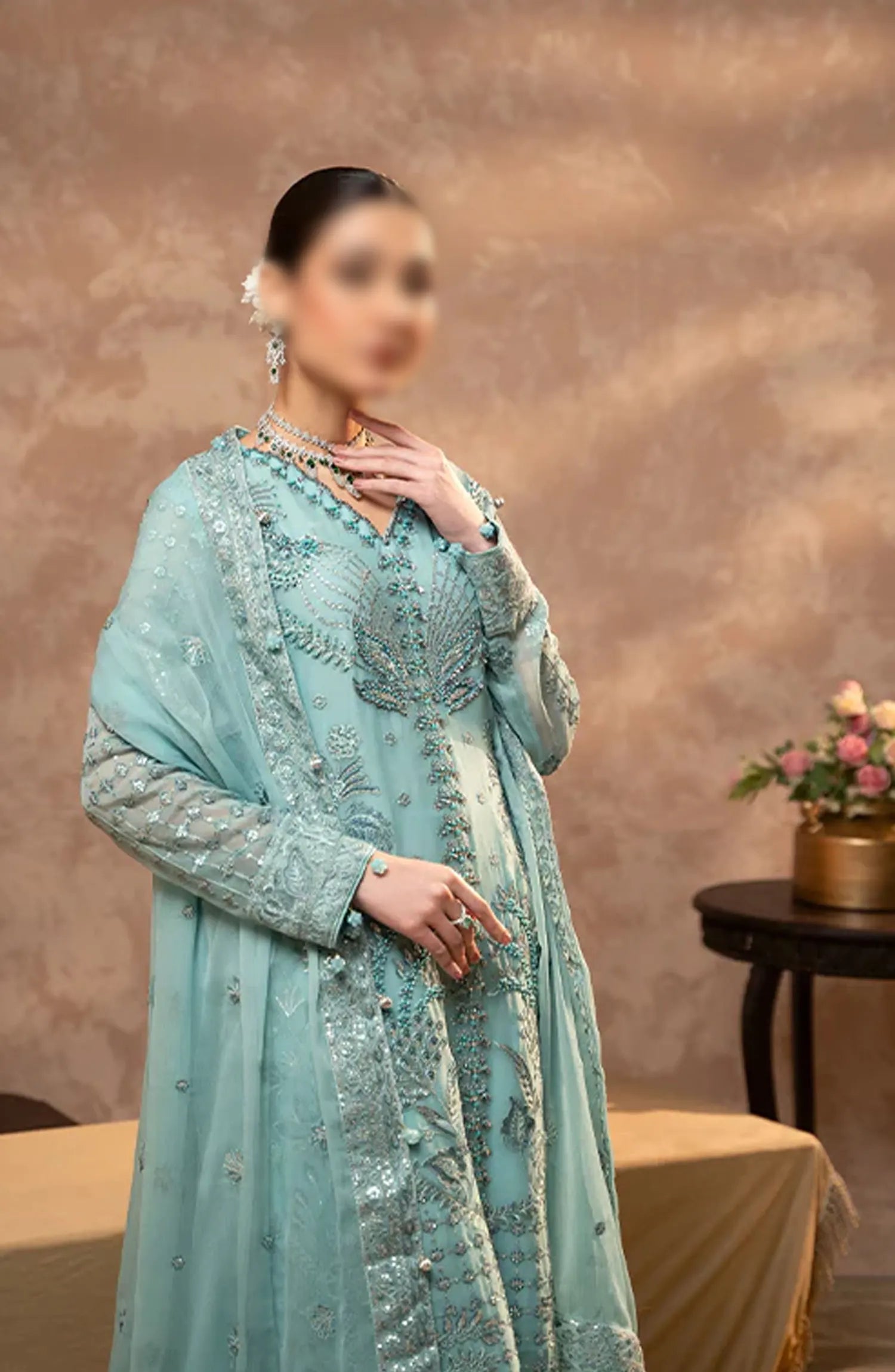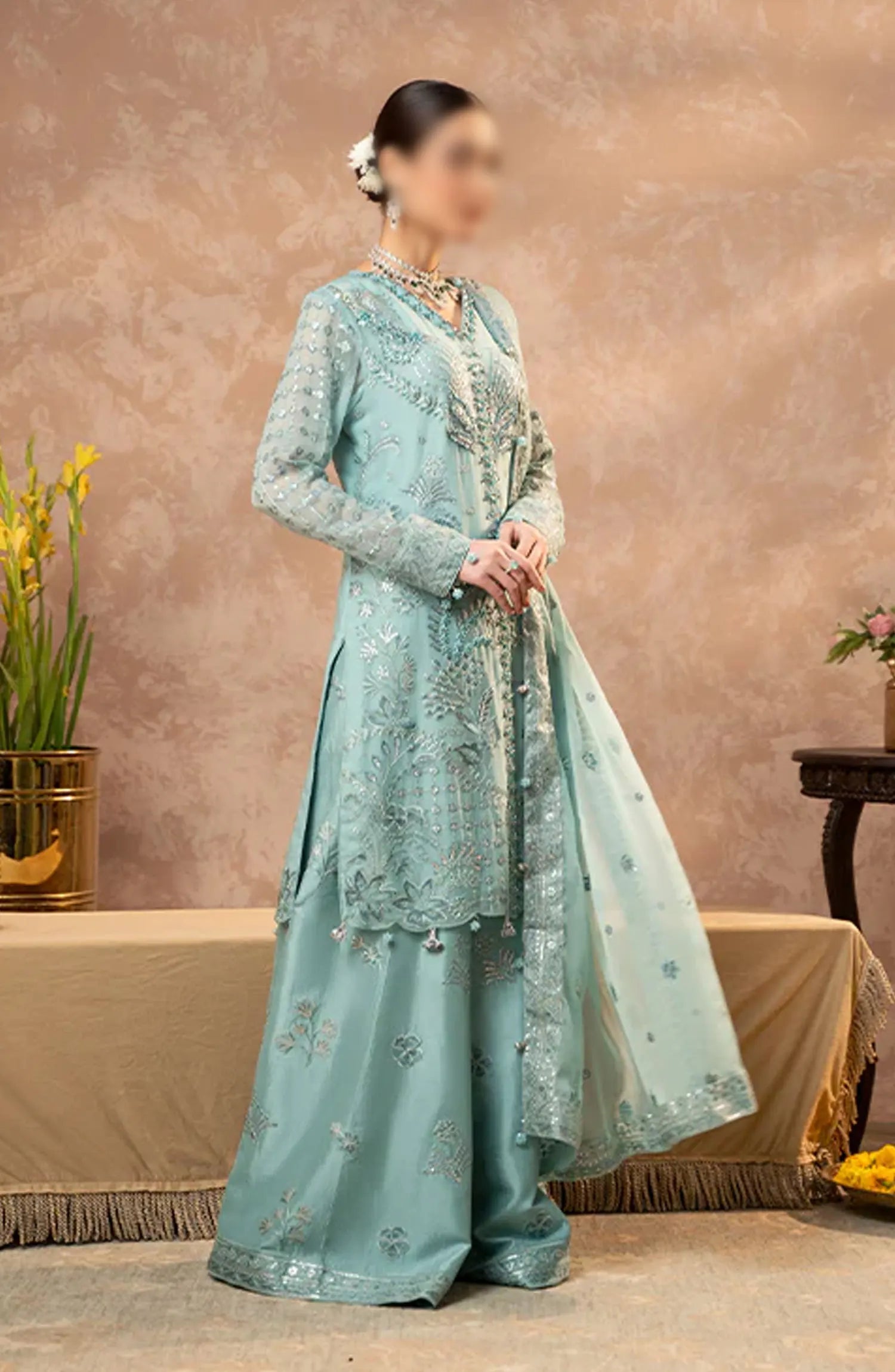 Zebtan Zeenat Festive Unstitched Collection 2024 has been styled in the image for photography and illustrative purposes.