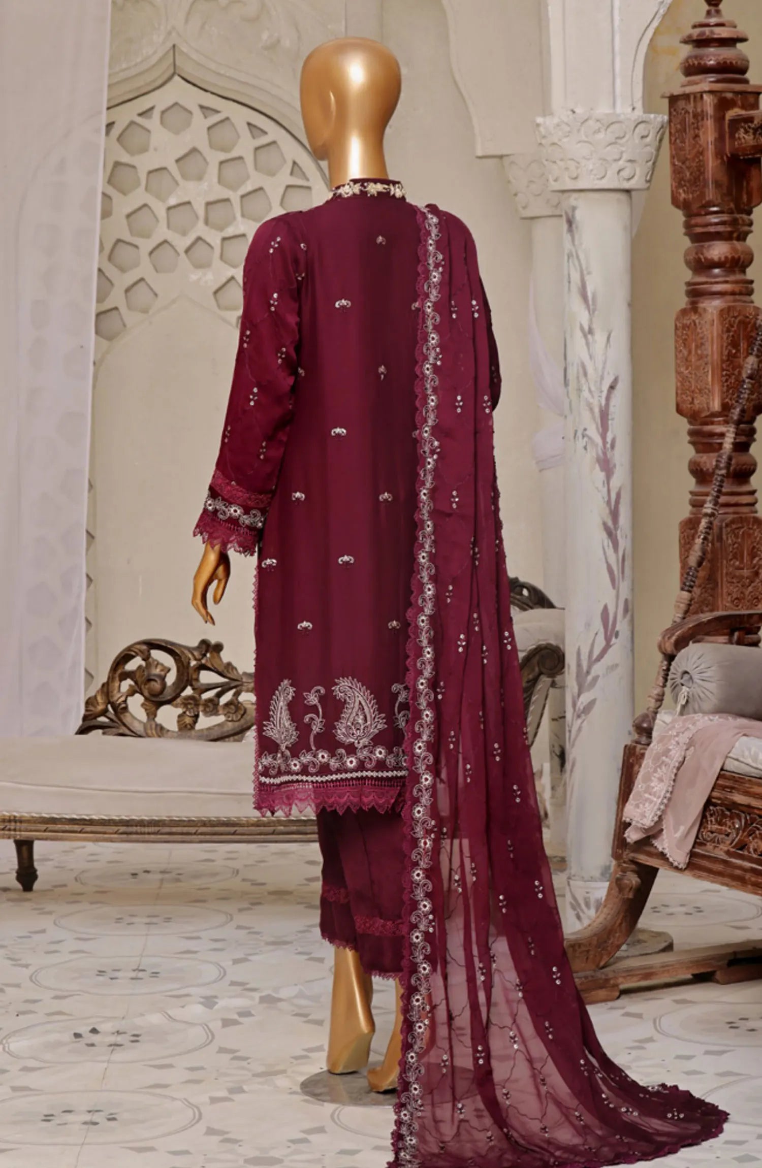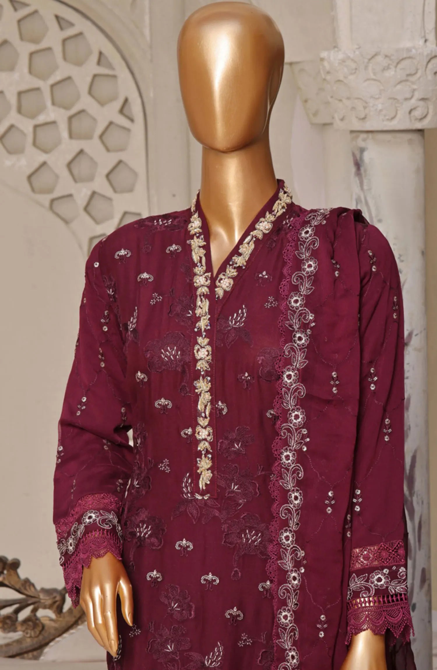Queen Embroidered Sweet Peach Unstitched 3 Piece Suit - Design-05 - QU25SW - Purple - Winter Collection