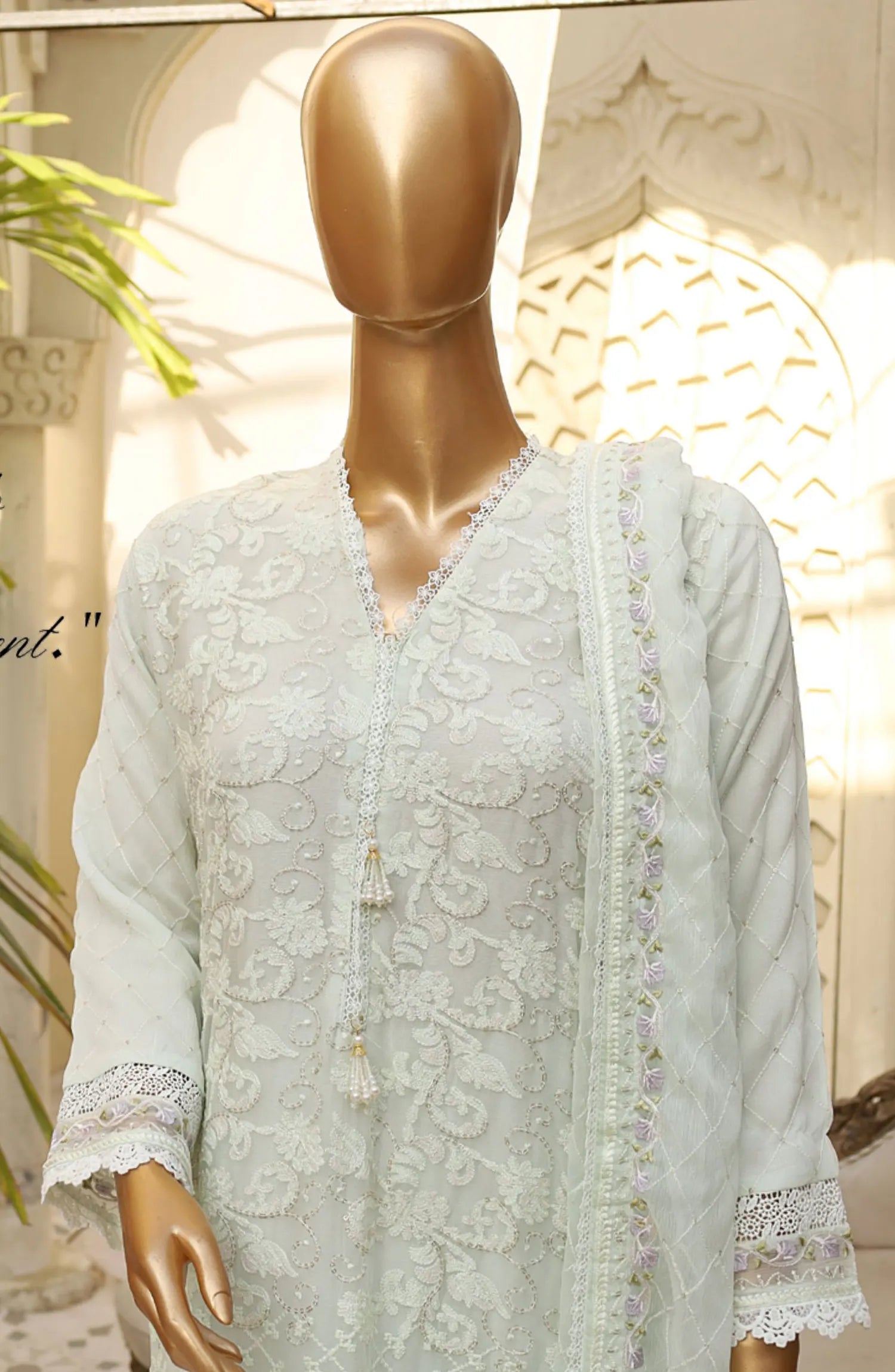 Zeenat Chiffon Formal 3-pc Stiched Collection 2024 has been styled in the image for photography and illustrative purposes.