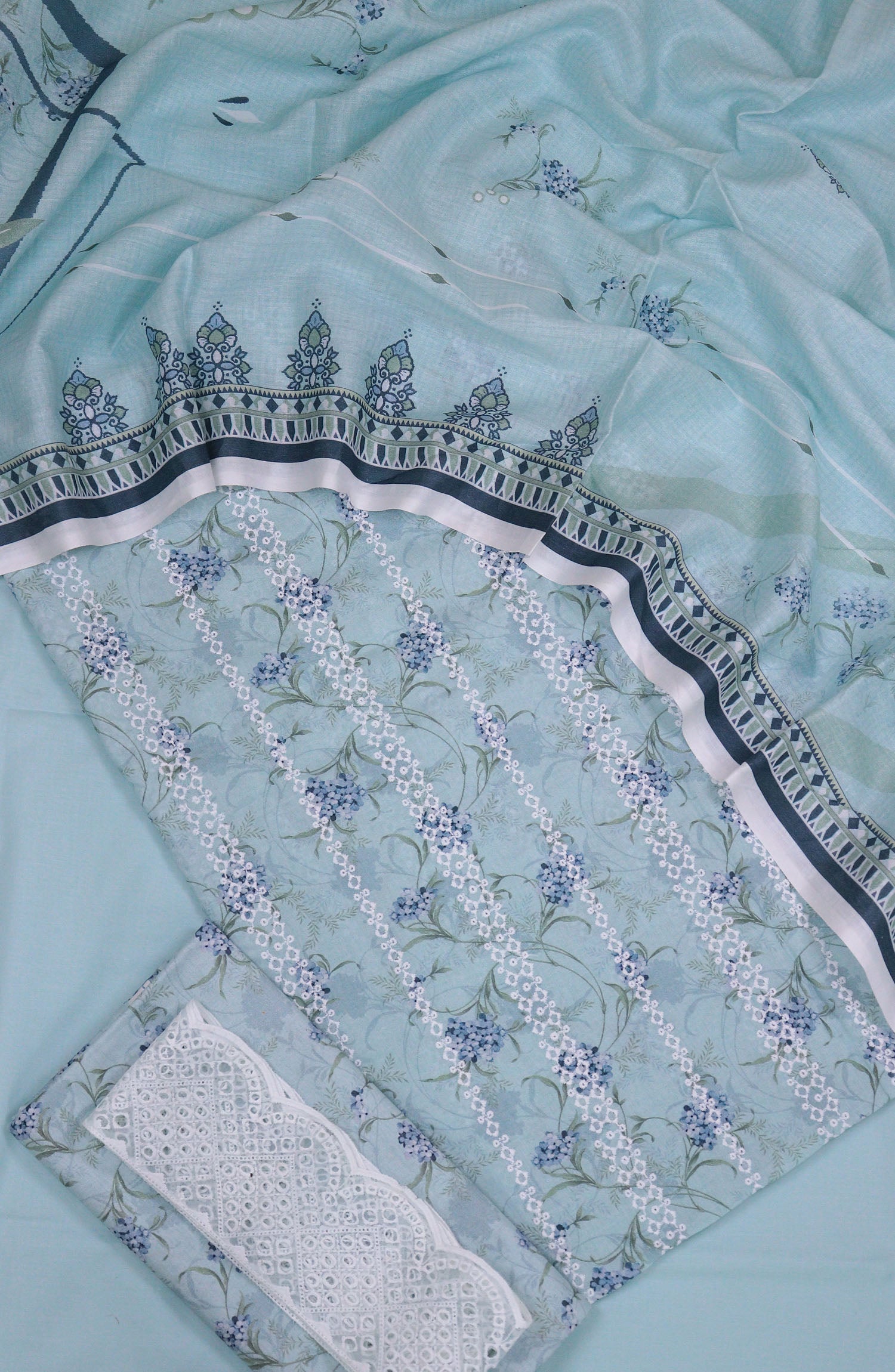 Zehra by Amna Khadija Chikankari Lawn Unstitched 3 Piece Suit - D-02 - AM25ZCL - Blue - Summer Collection