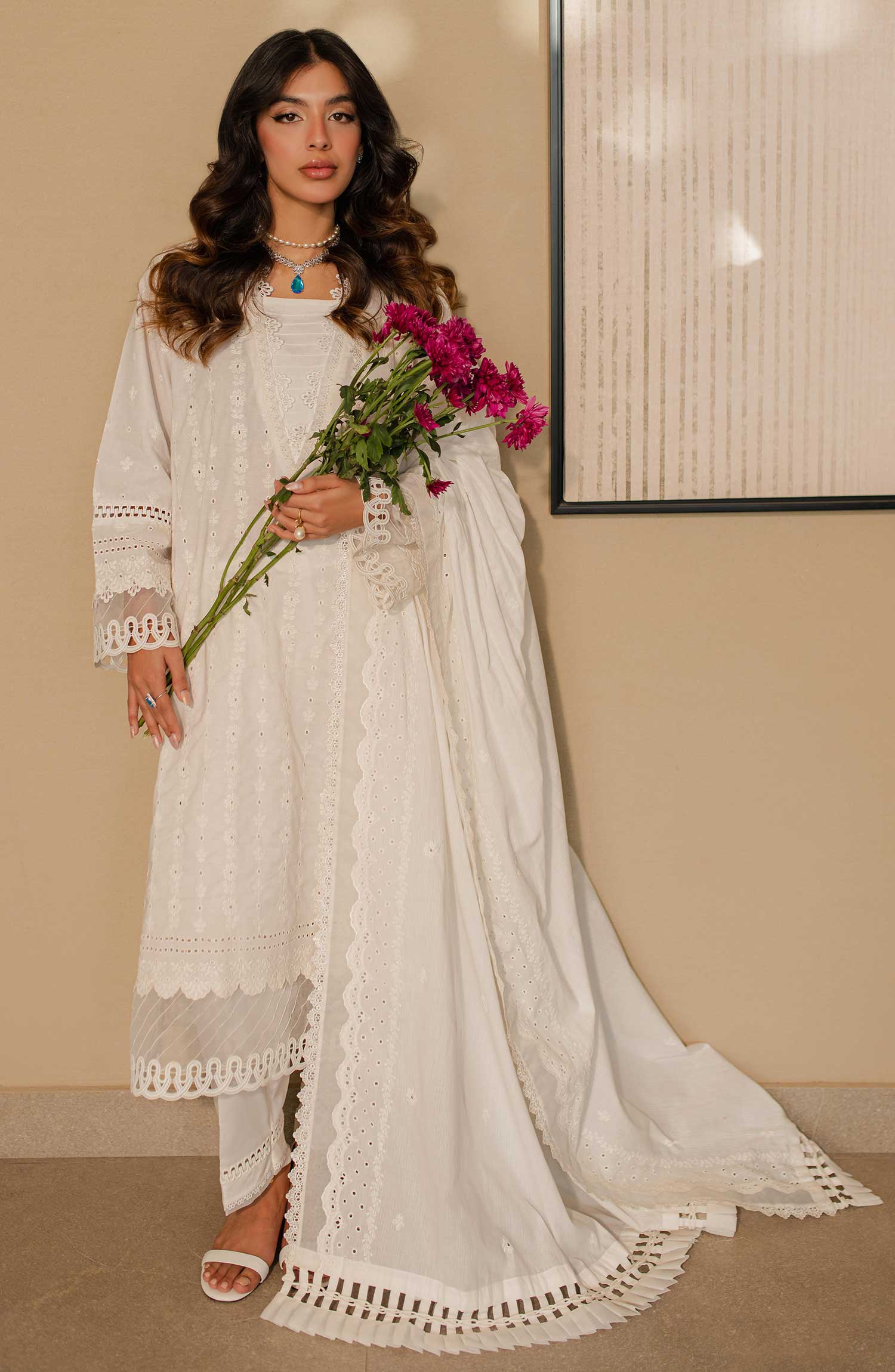 Zellbury Embroidered Cotton Unstitched 3 Piece - WUC 24E 30704 - ZB25C - White - Summer Collection