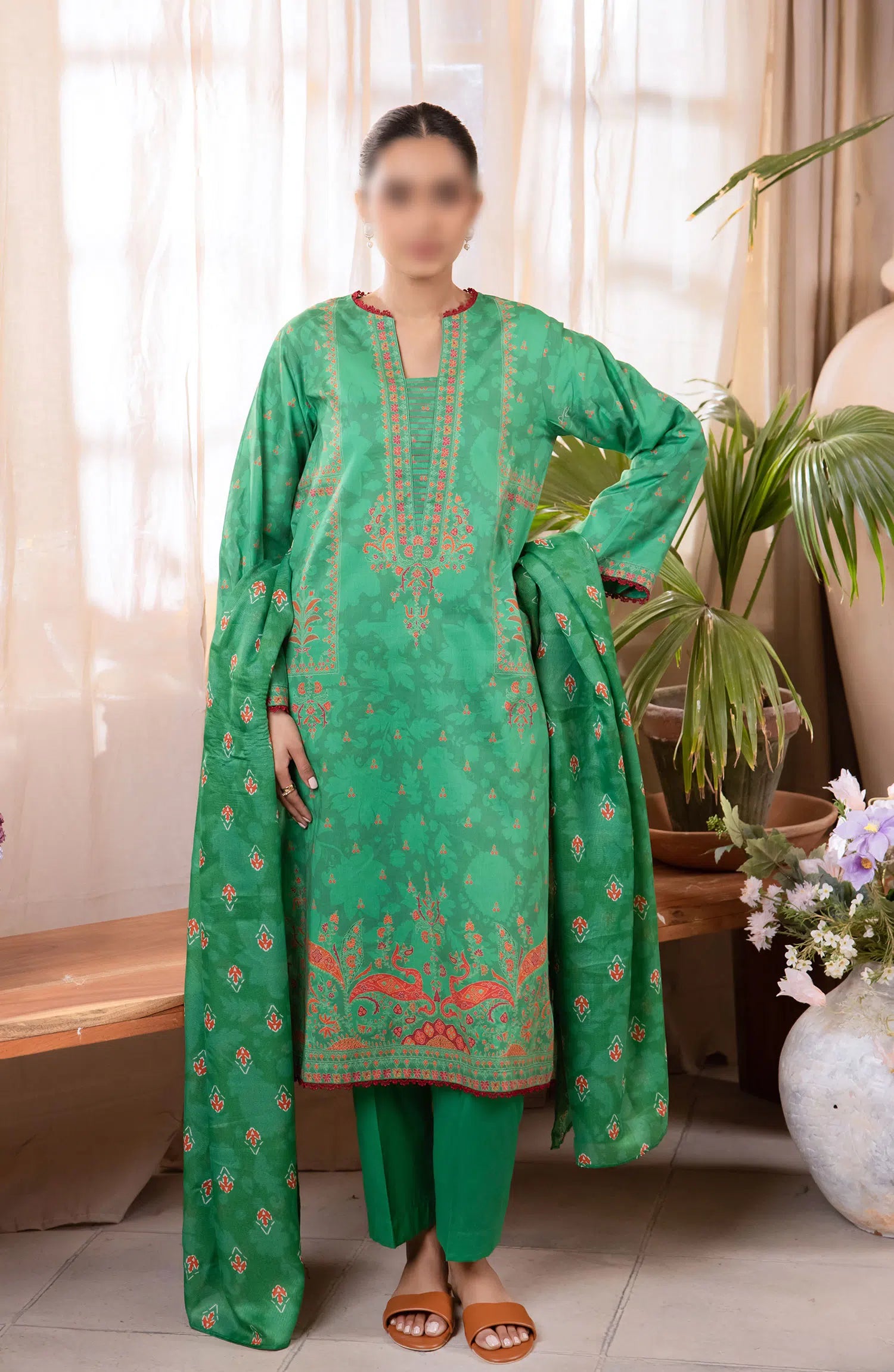 Modest Embroidered Chiffon Stitched 3 Piece Suit - 9740-Grn - MOD25PRF - Green - Festive Girls Collection