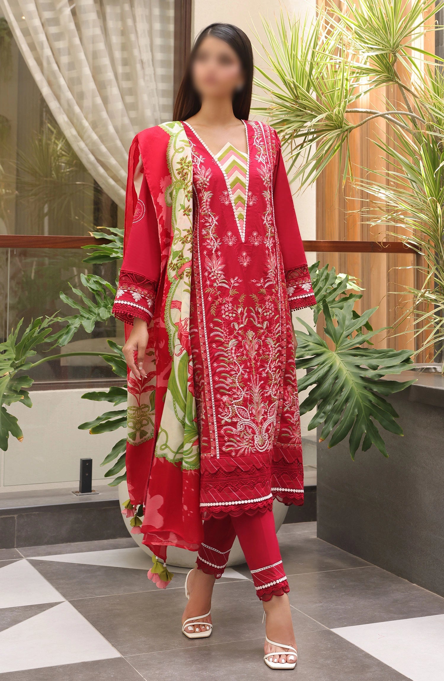 Modest Embroidered Chiffon Stitched 3 Piece Suit - 9740-Grn - MOD25PRF - Green - Festive Girls Collection
