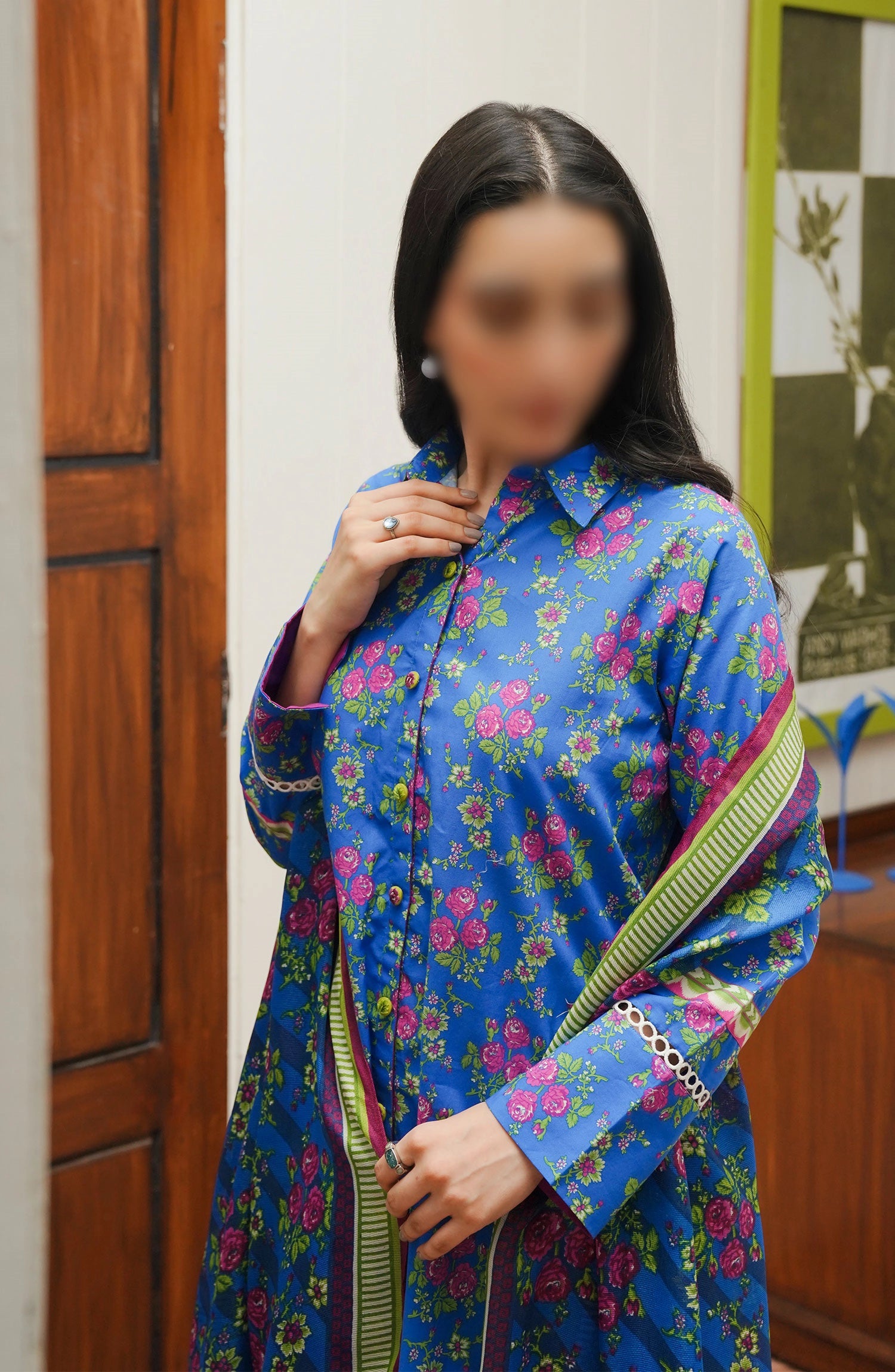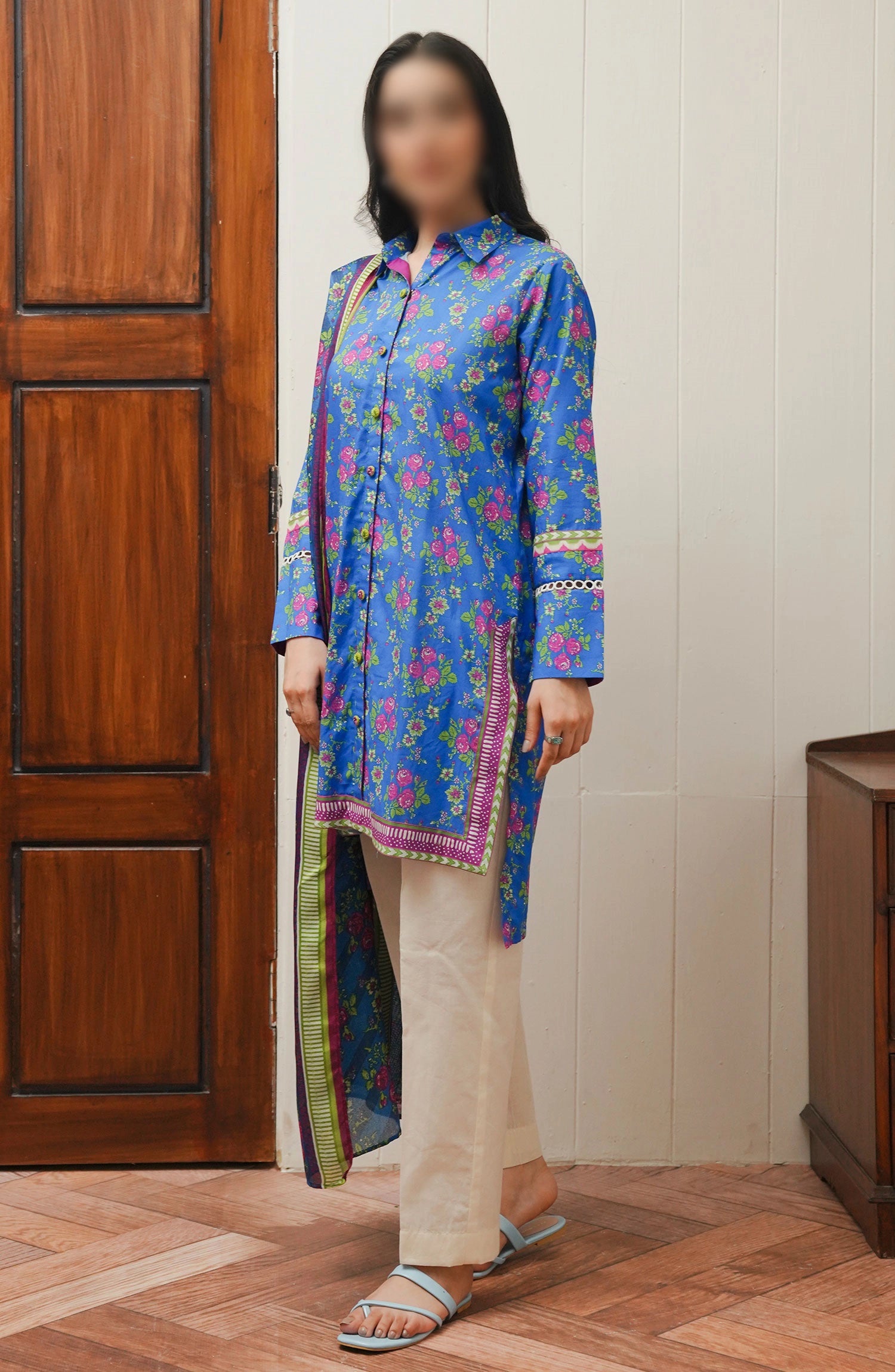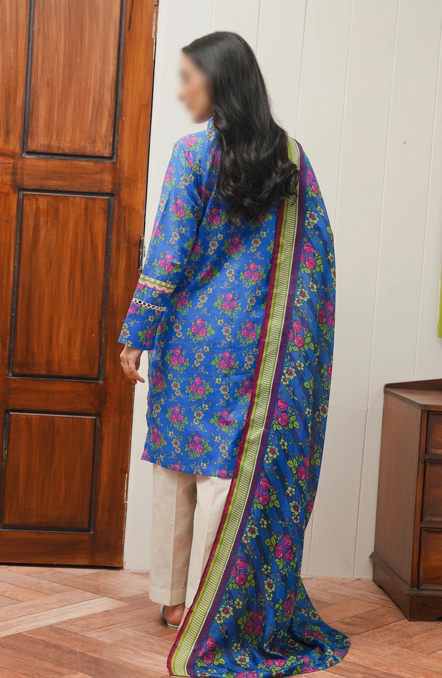 Modest Embroidered Chiffon Stitched 3 Piece Suit - 9840-Cblu - MOD25PRF - Blue - Festive Girls Collection