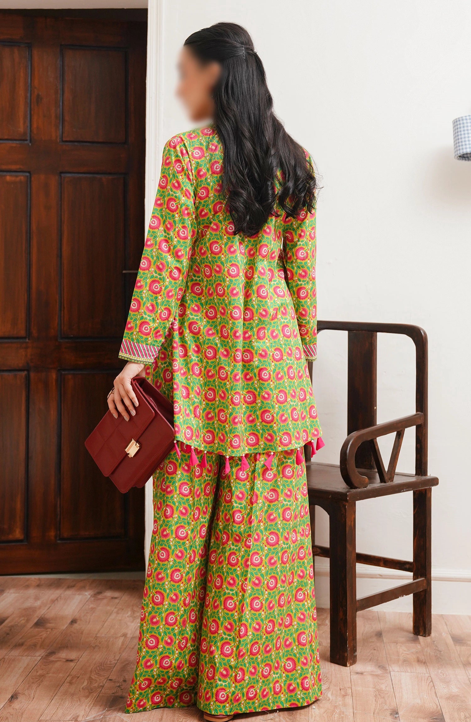 Modest Embroidered Chiffon Stitched 3 Piece Suit - 9740-Grn - MOD25PRF - Green - Festive Girls Collection