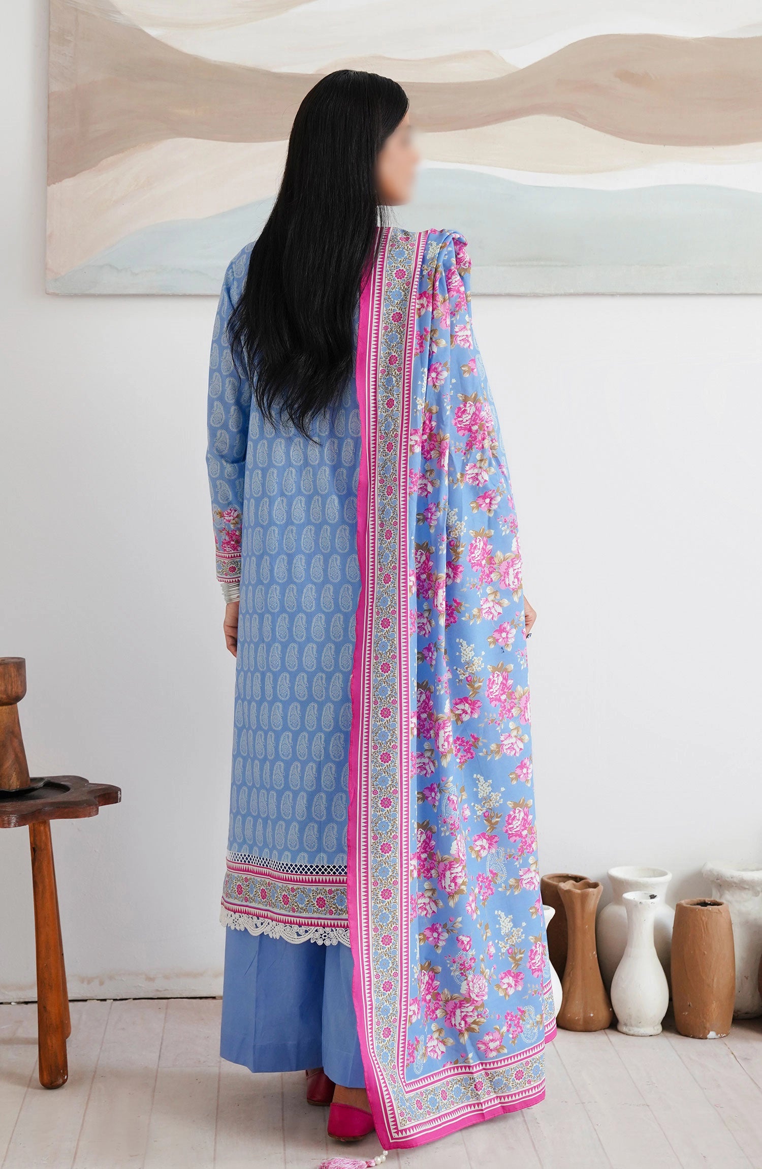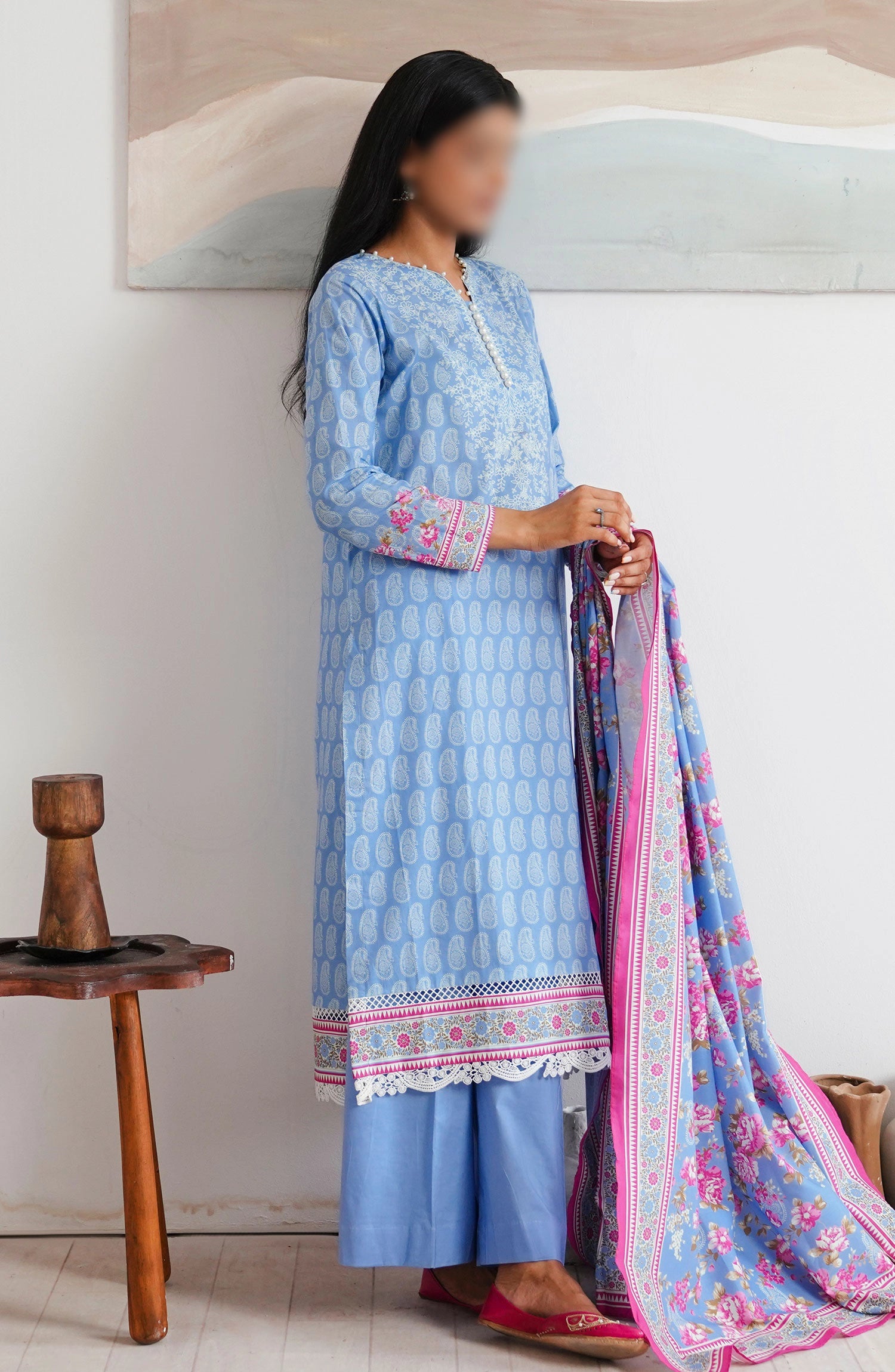 Modest Embroidered Chiffon Stitched 3 Piece Suit - 9840-Cblu - MOD25PRF - Blue - Festive Girls Collection
