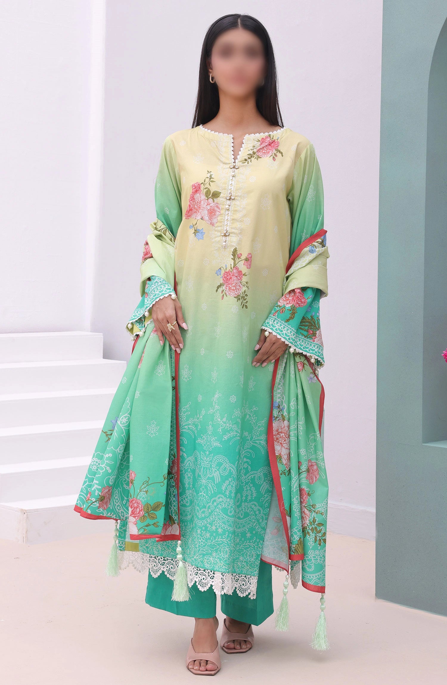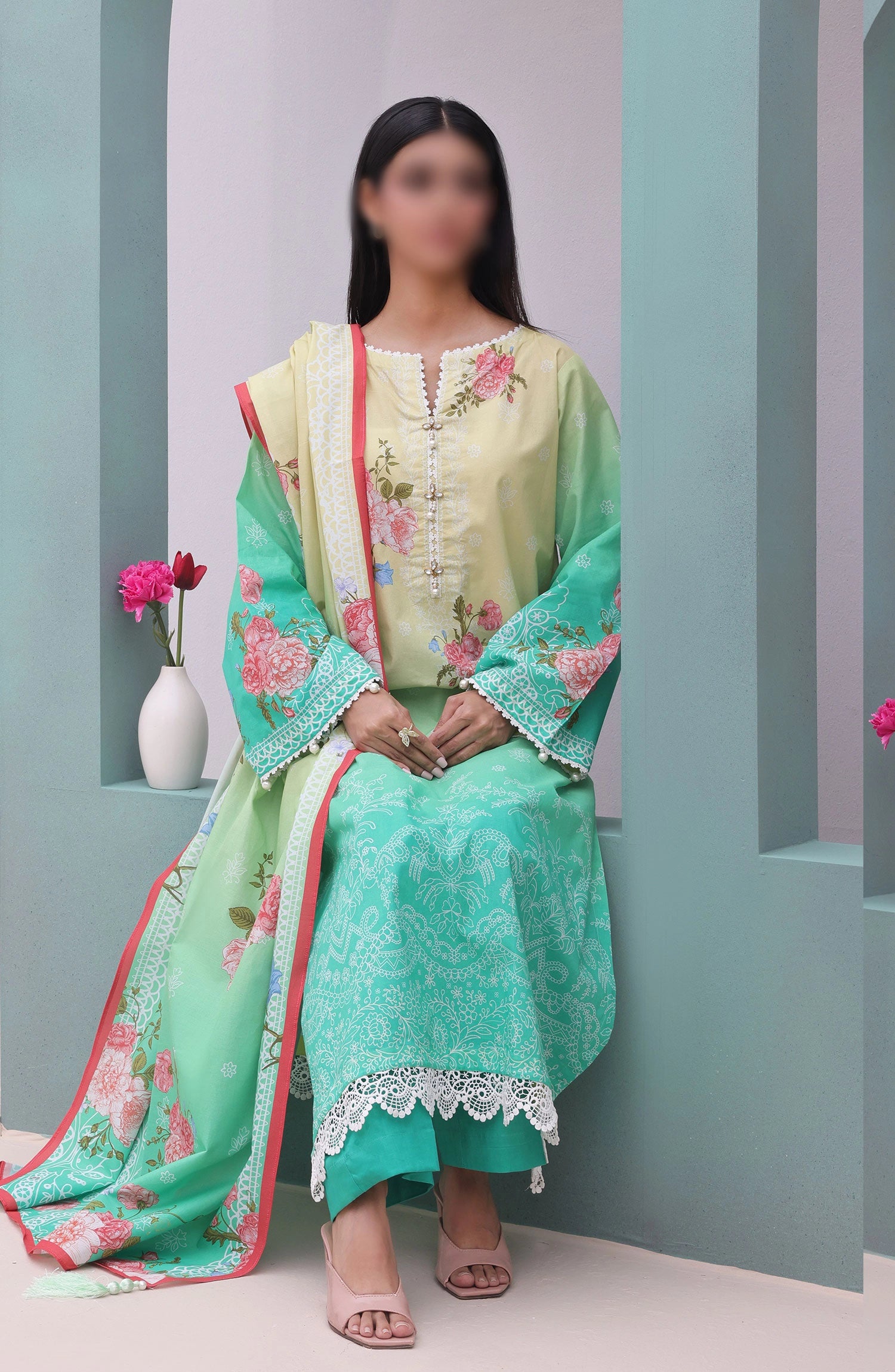 Modest Embroidered Chiffon Stitched 3 Piece Suit - 9740-Grn - MOD25PRF - Green - Festive Girls Collection