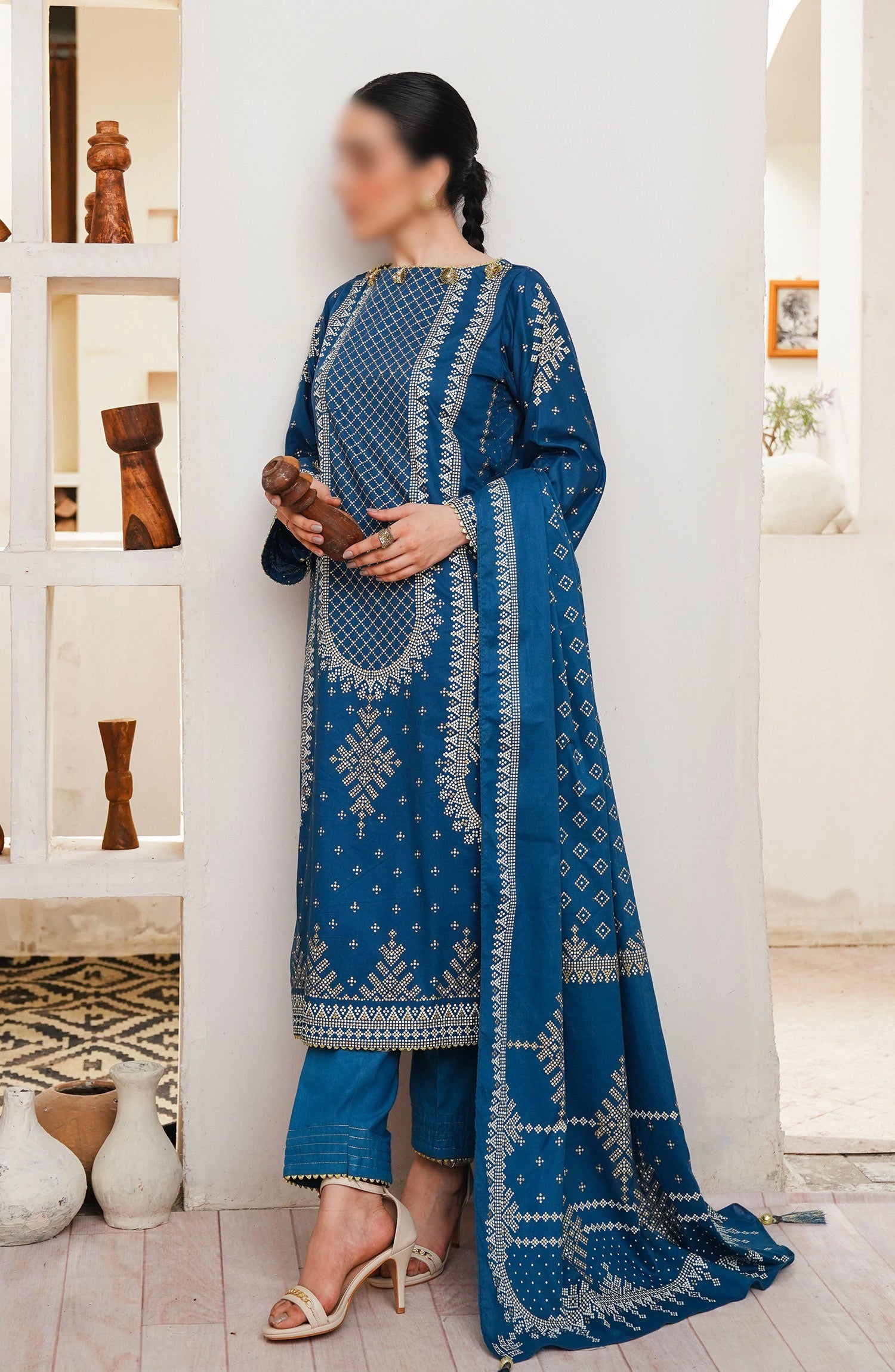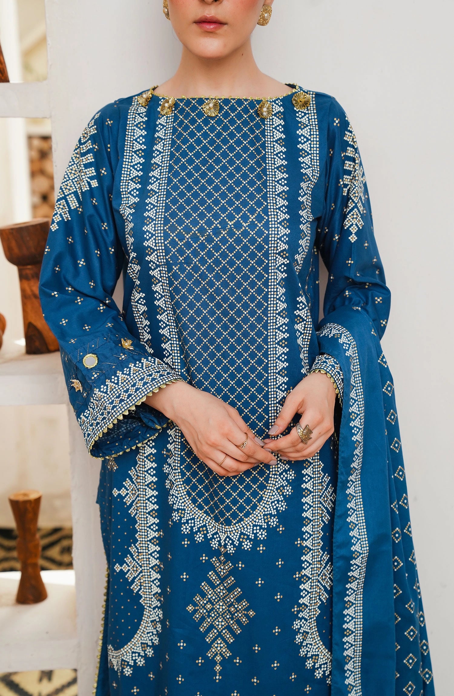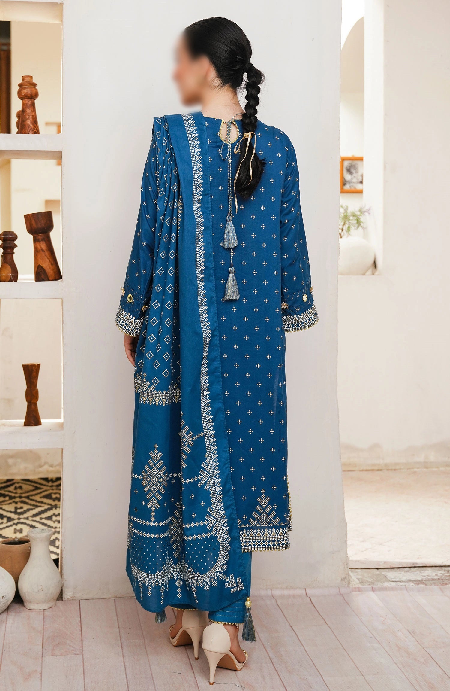 Modest Embroidered Chiffon Stitched 3 Piece Suit - 9840-Cblu - MOD25PRF - Blue - Festive Girls Collection